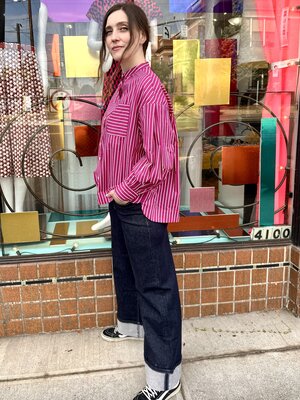 Review Ari Blouse - Fuchsia Stripe
