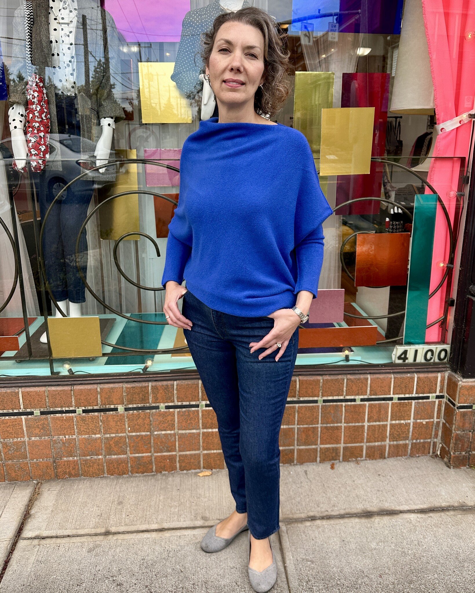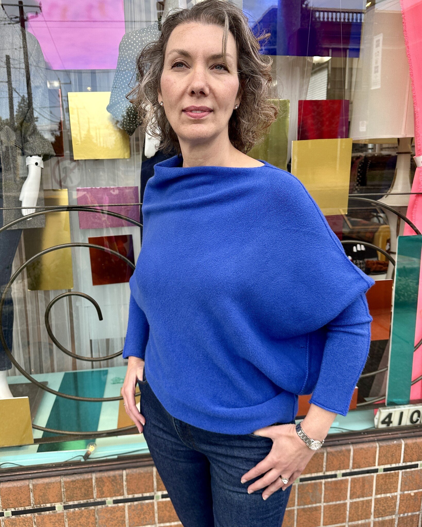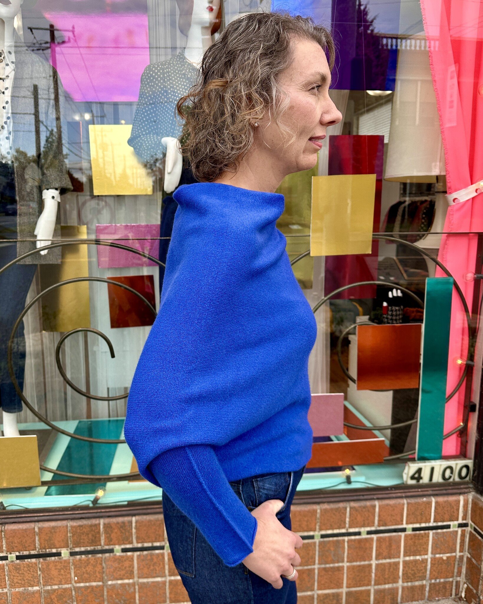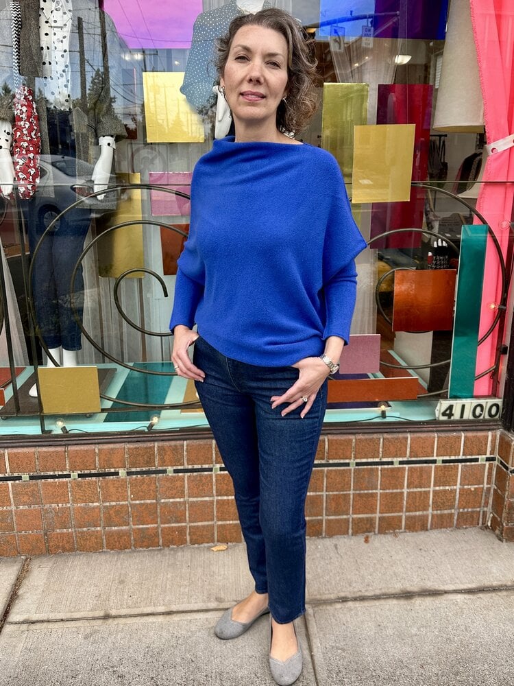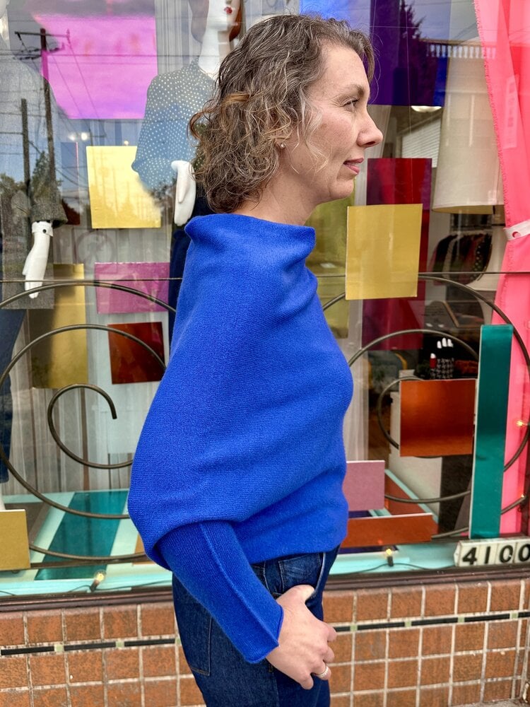 Super cool asymmetrical sweater! Pretty cobalt blue!