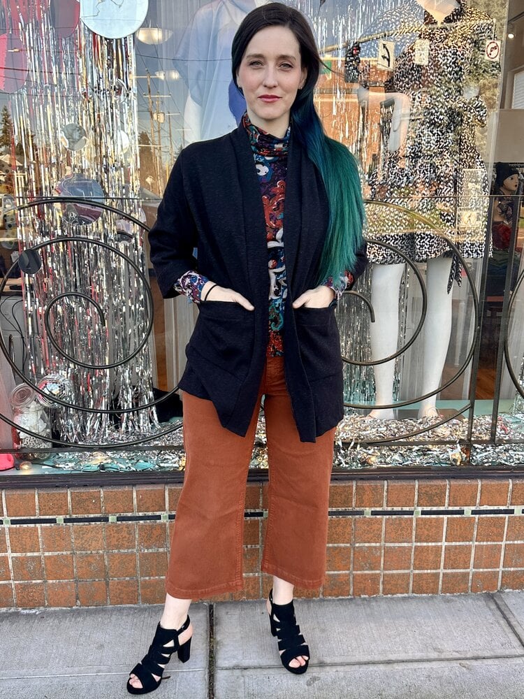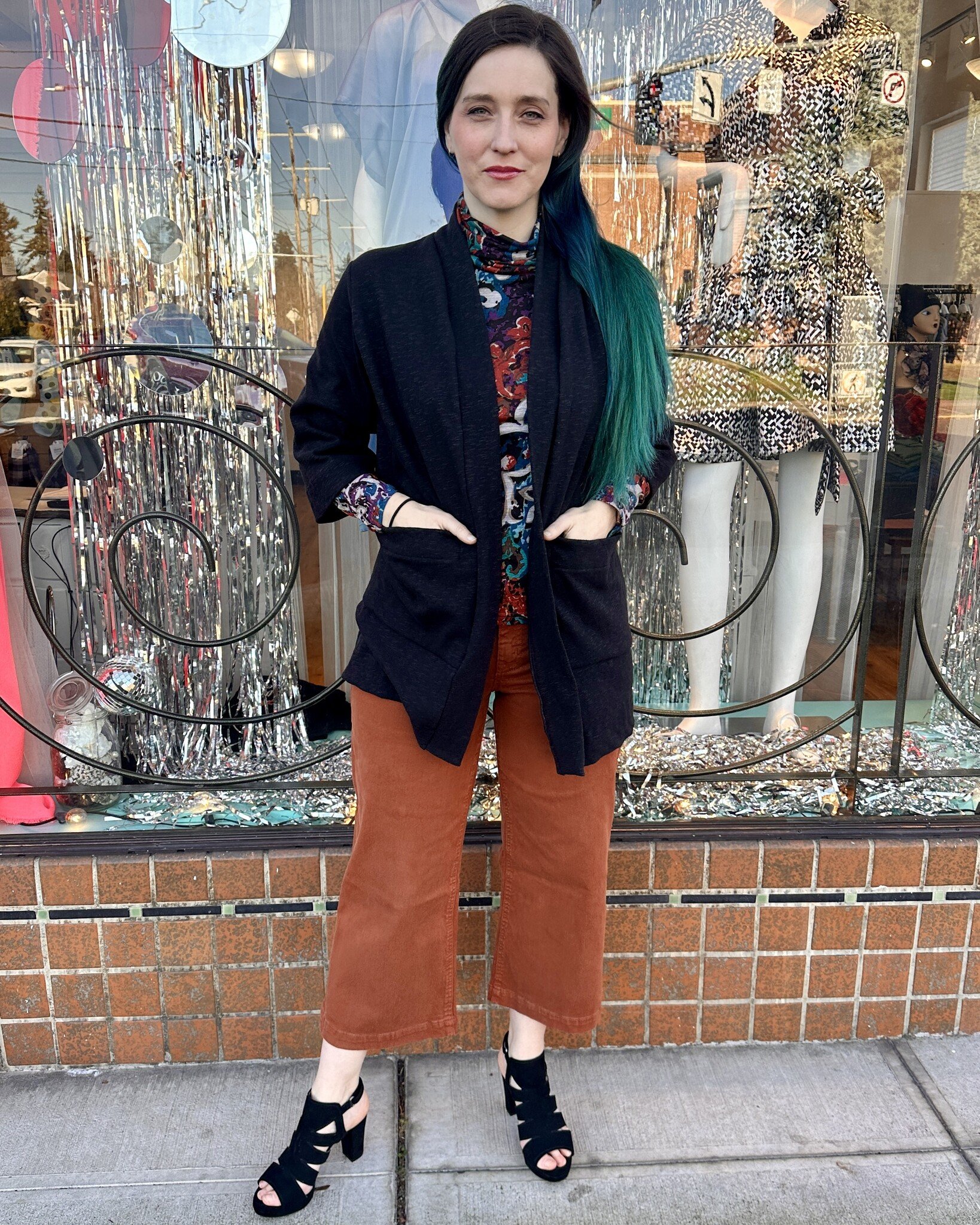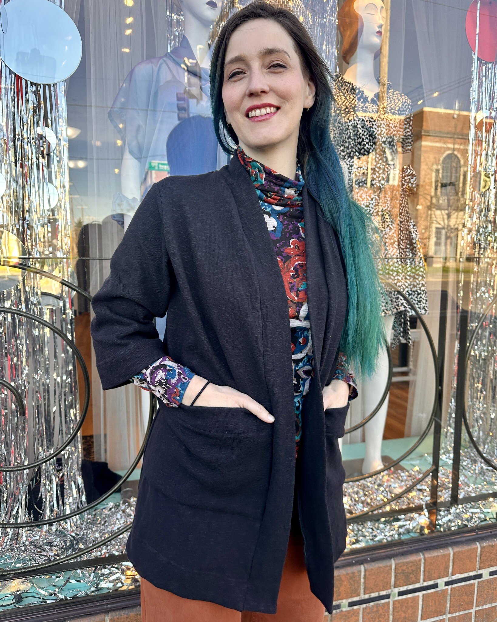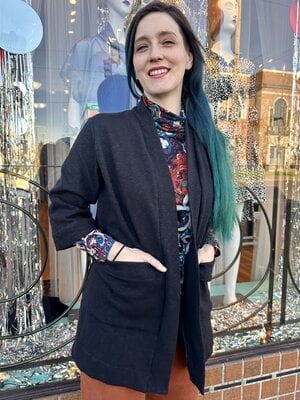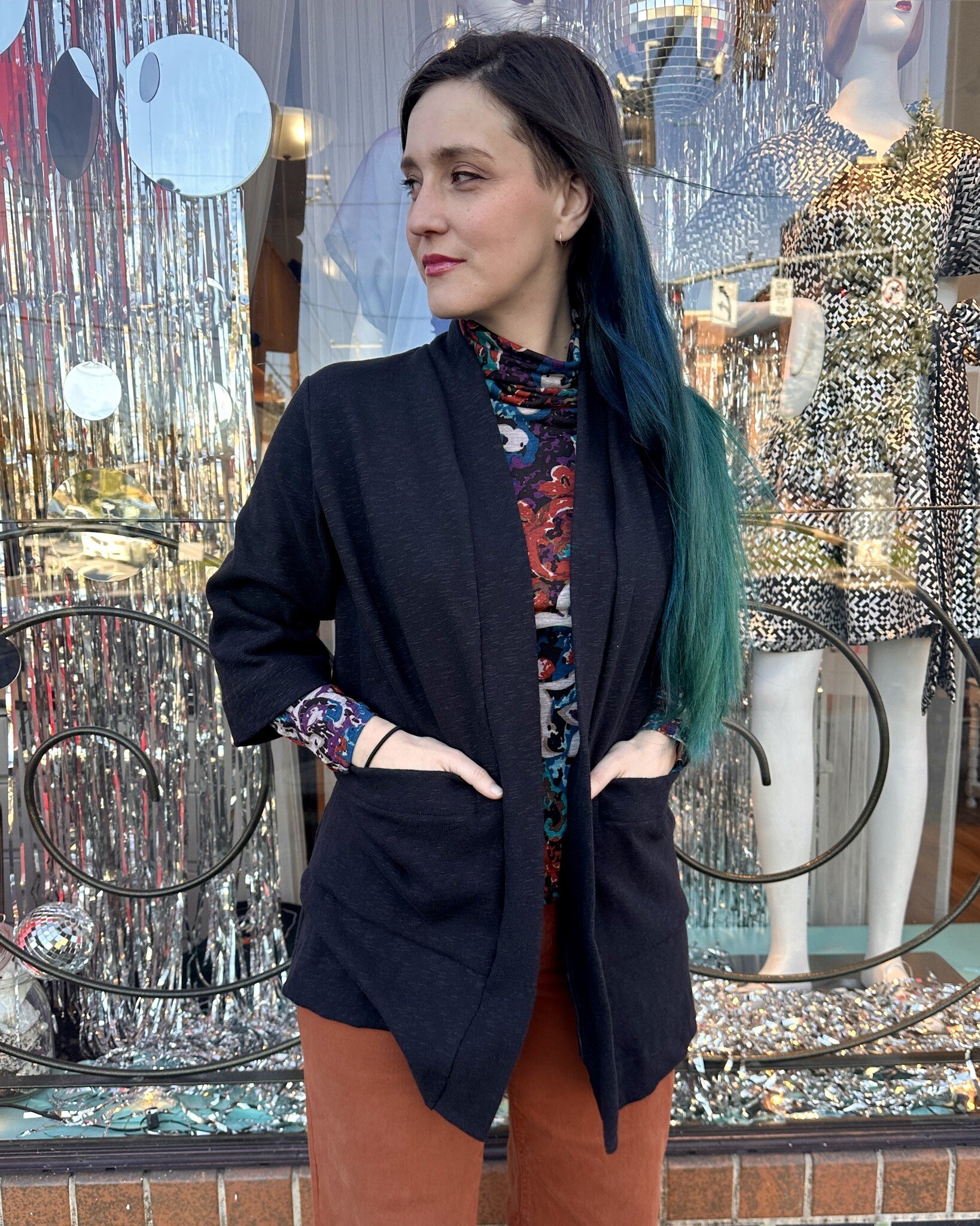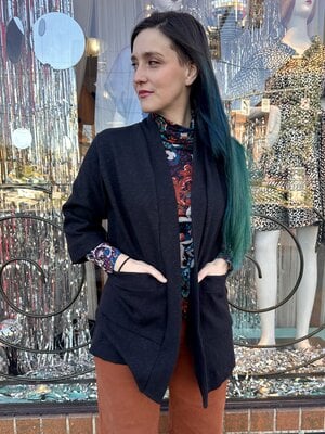 Easy fit, cozy cardigan with giant pockets. 3/4 wide sleeves