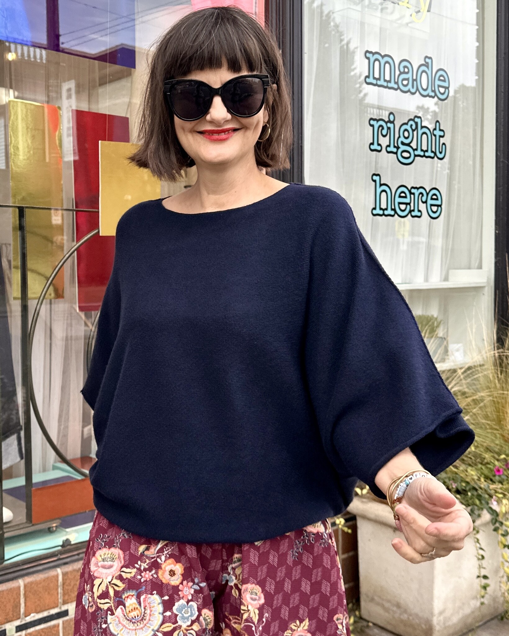 We love this boxy Cherina Sweater with dolman sleeves!