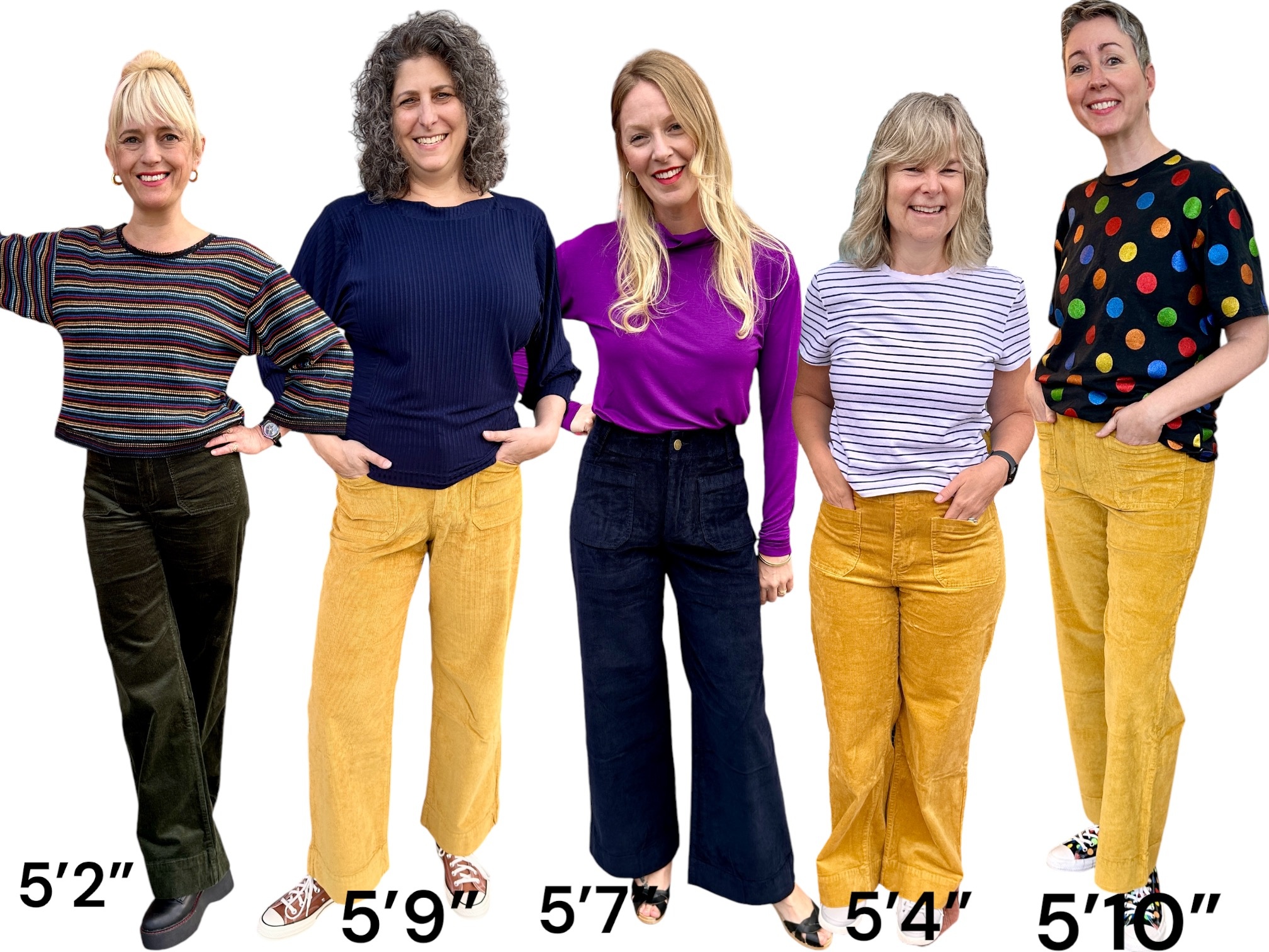 Sarah G is 5'2", wearing size 26. See the picture with a variety of people wearing the Cole Cords last. year... they care cute on everyone!