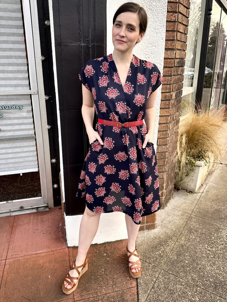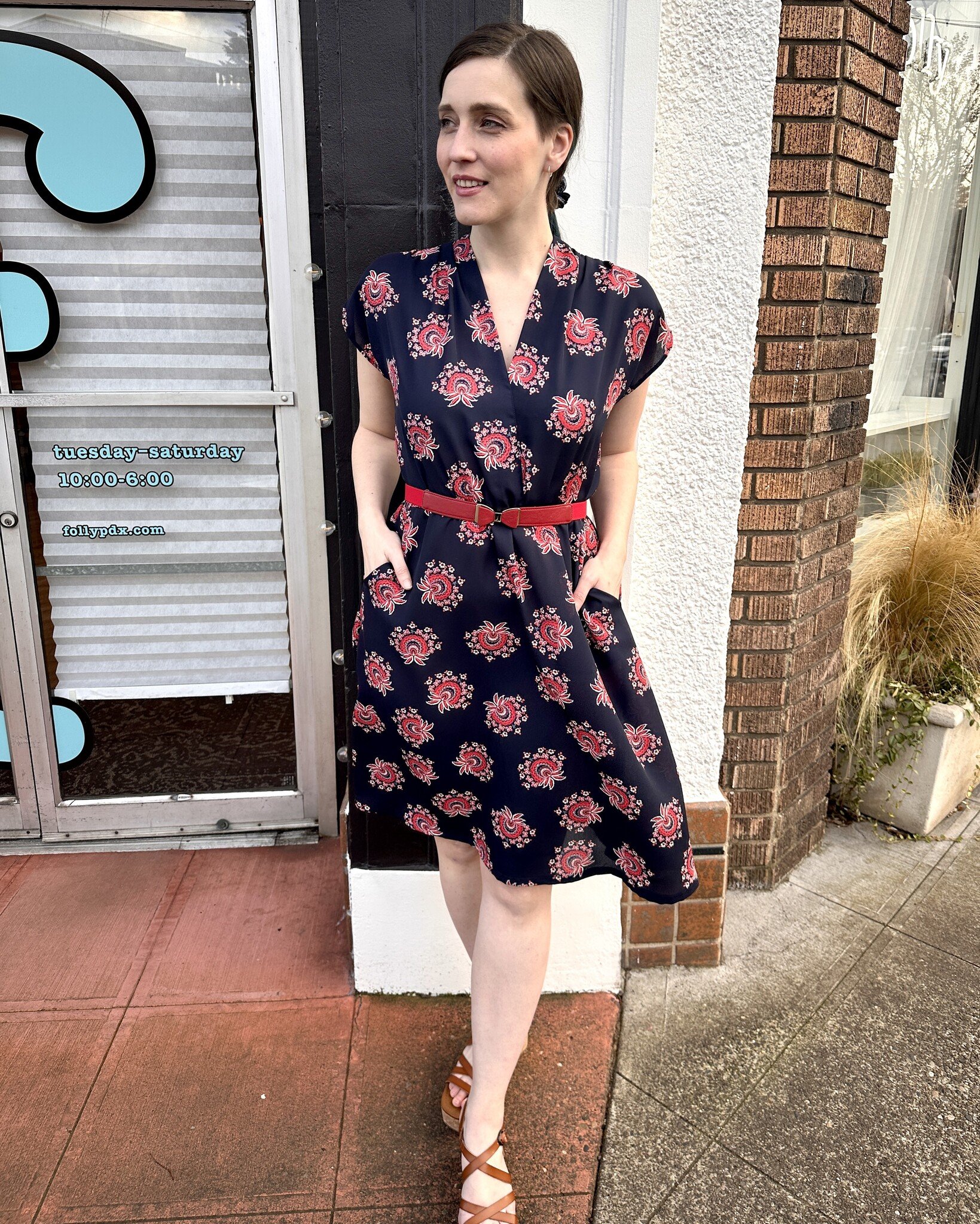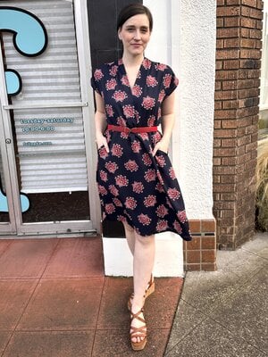 Daisy is a lovely dress for work or play! Gathers at the shoulder give the Daisy a very easy bust fit and the V neck is not too low for most work situations! Layer with a cardigan or blazer.