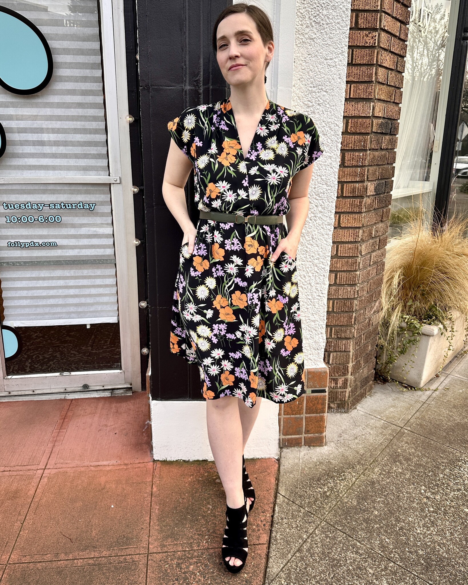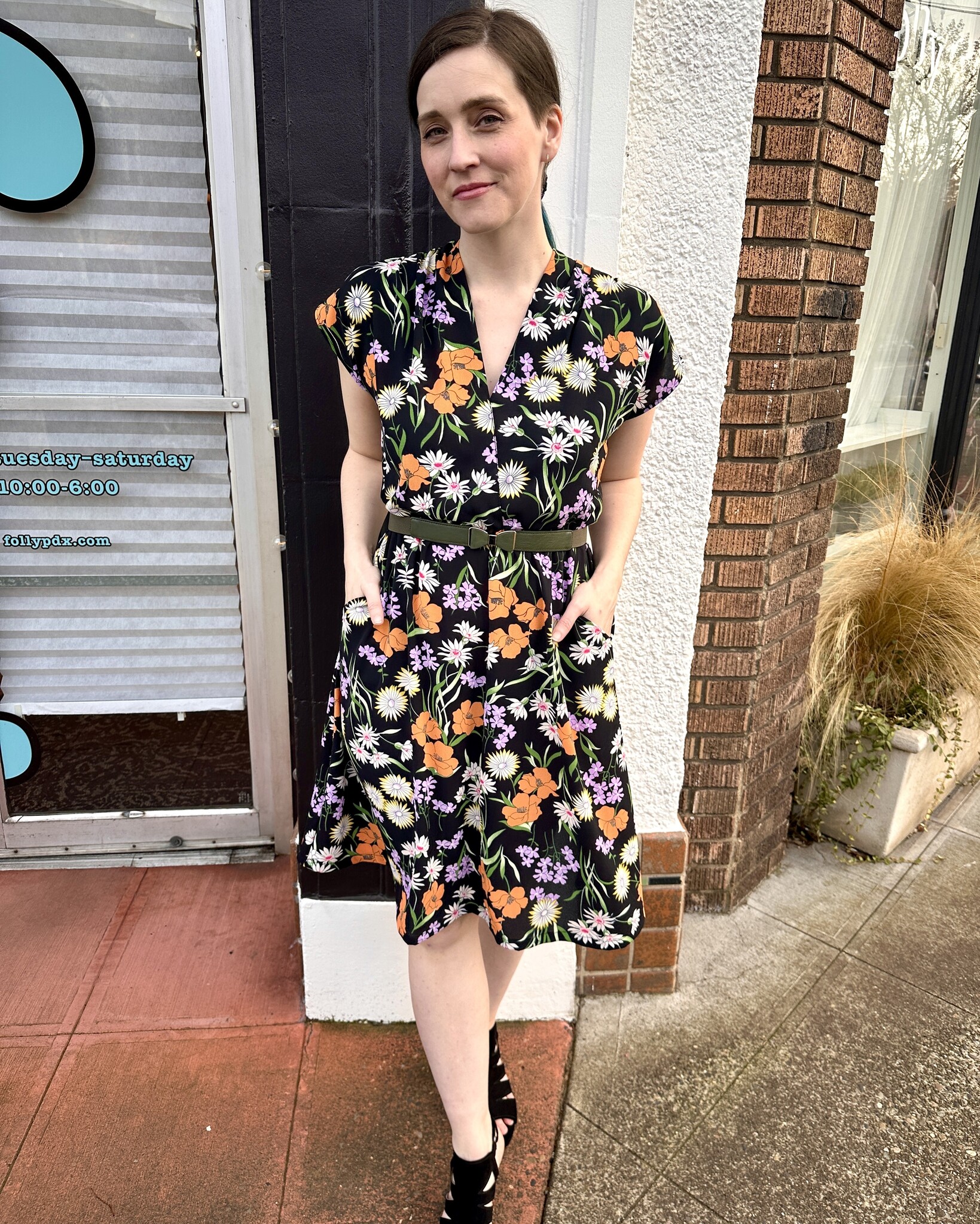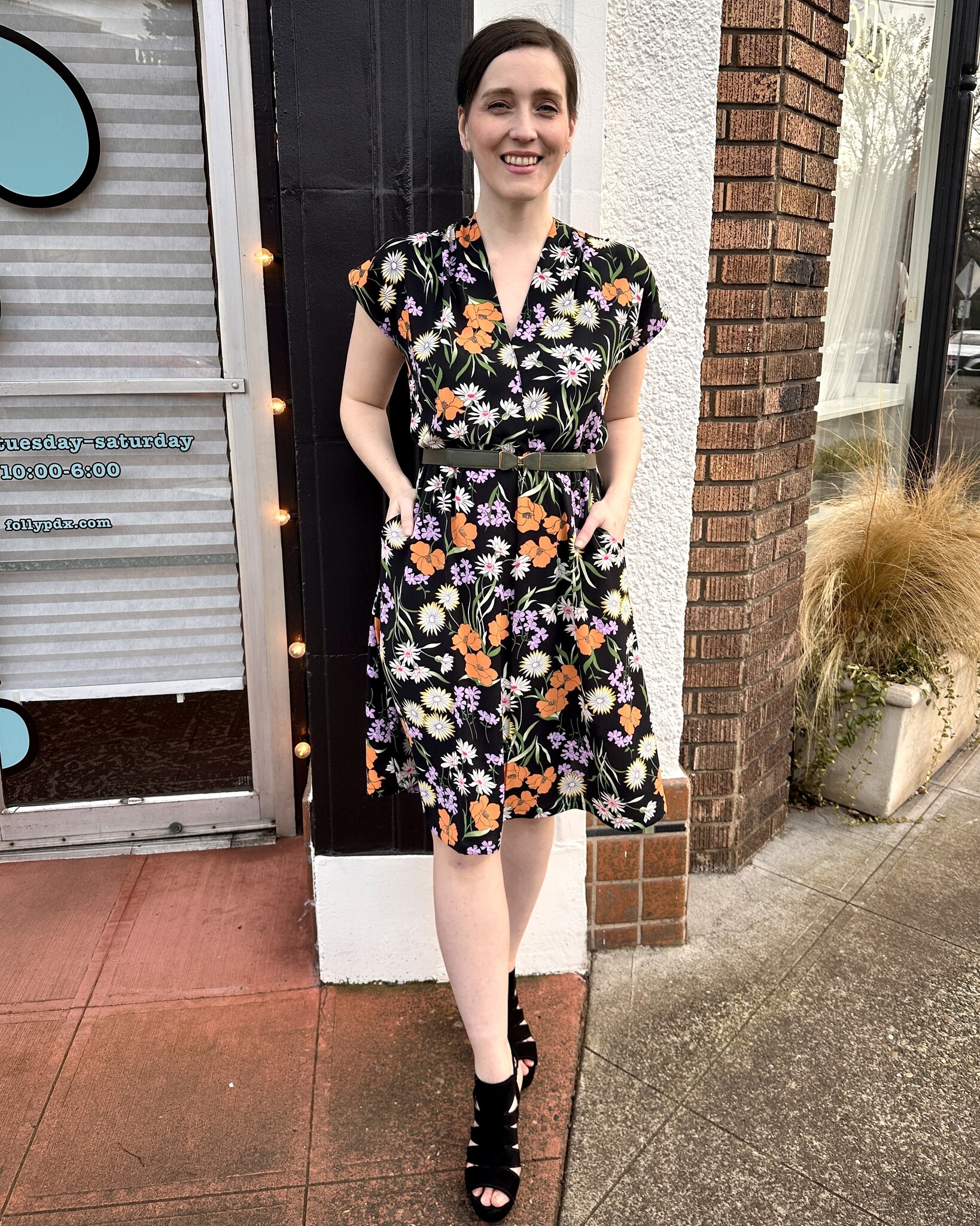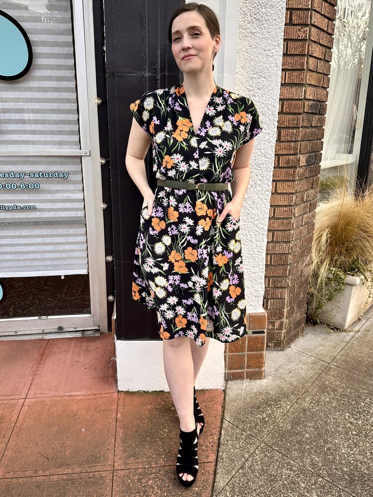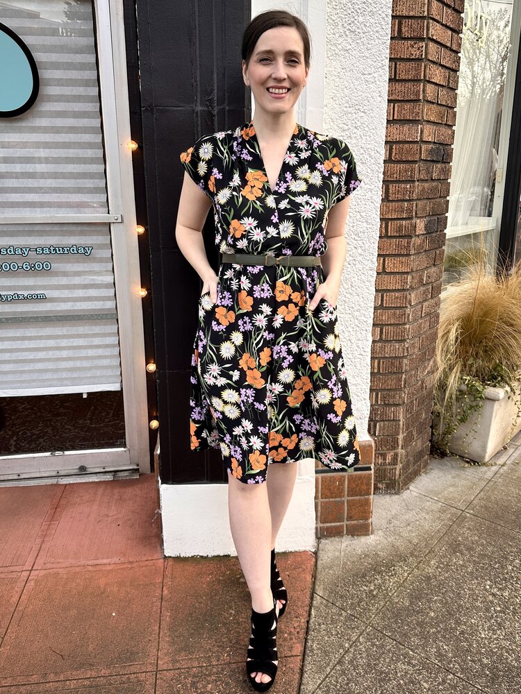 Daisy is a lovely dress for work or play! Gathers at the shoulder give the Daisy a very easy bust fit and the V neck is not too low for most work situations! Layer with a cardigan or blazer.