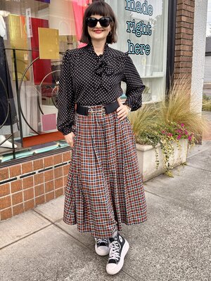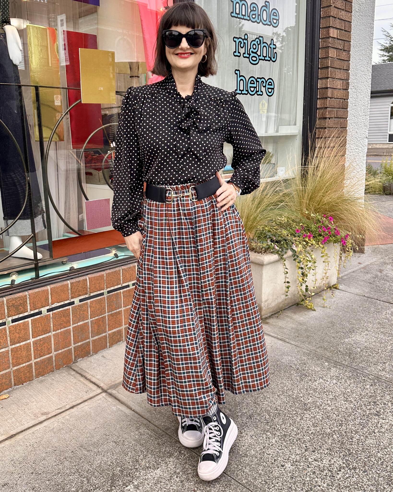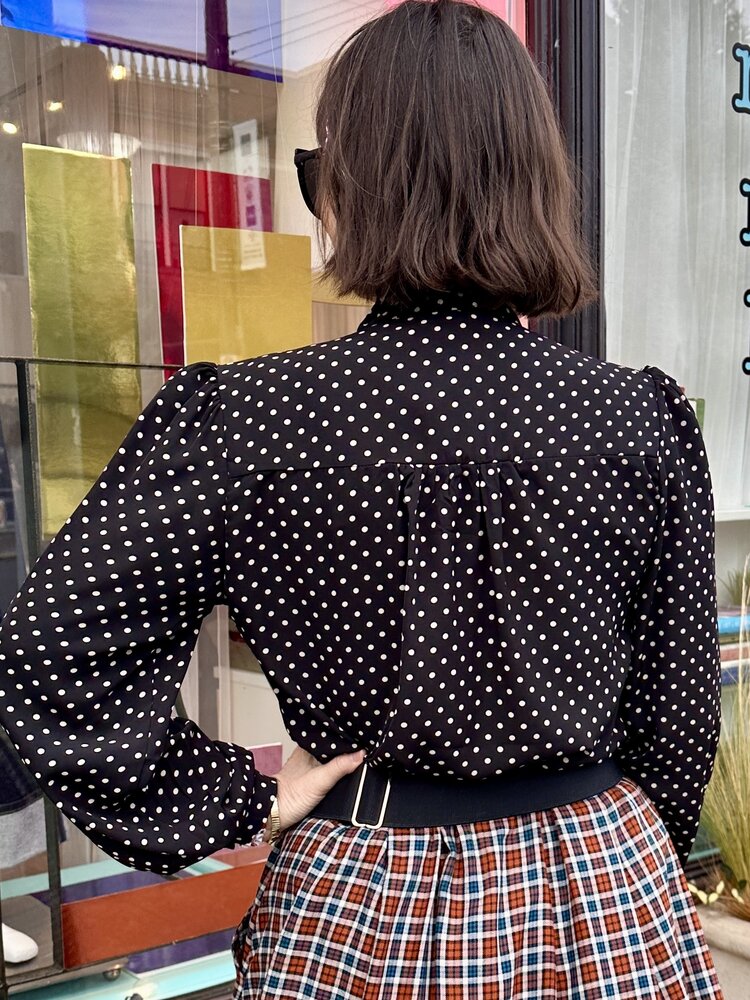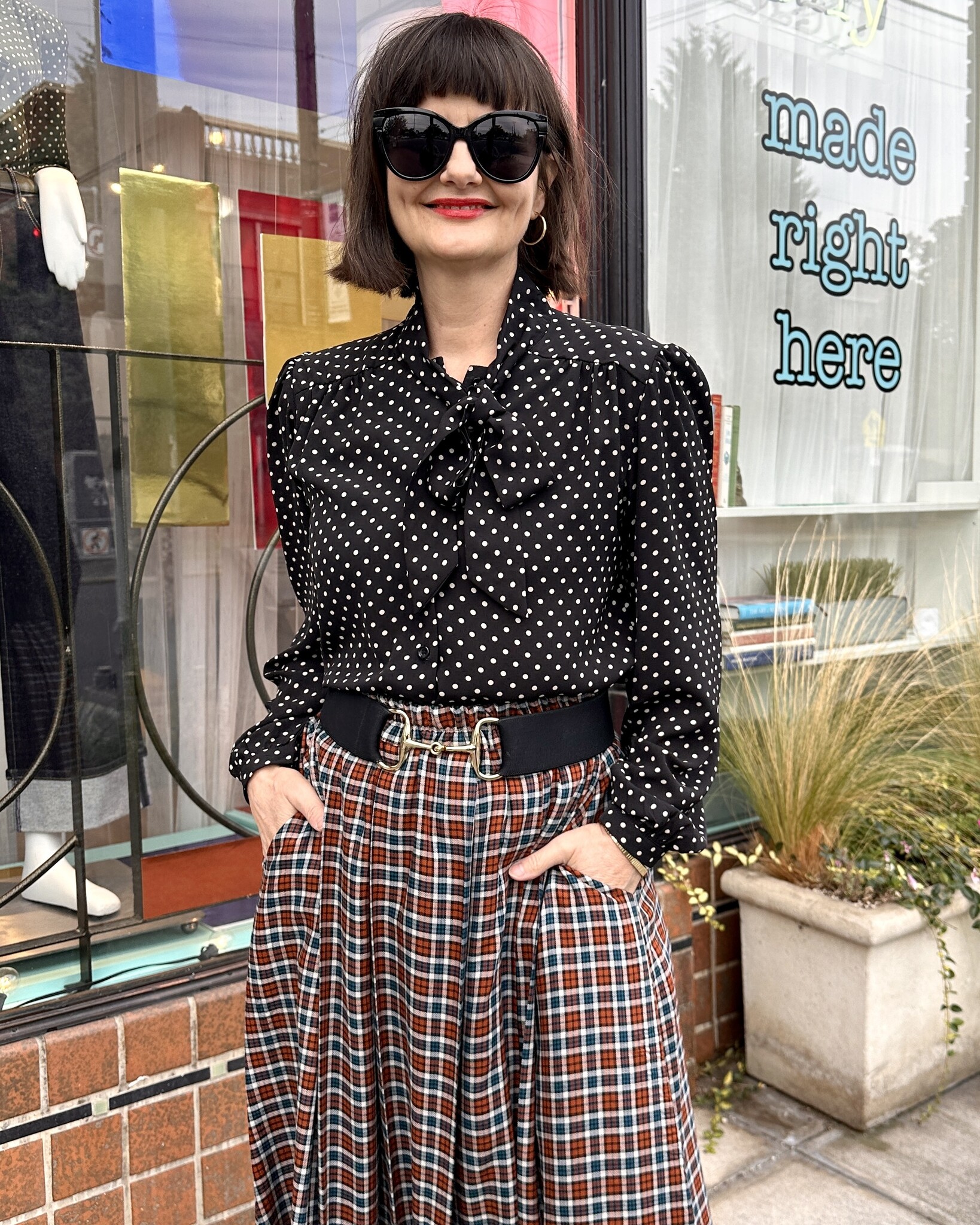 So cute! The Darline blouse in black dot is so good with everything. Or pair with your favorite jeans.