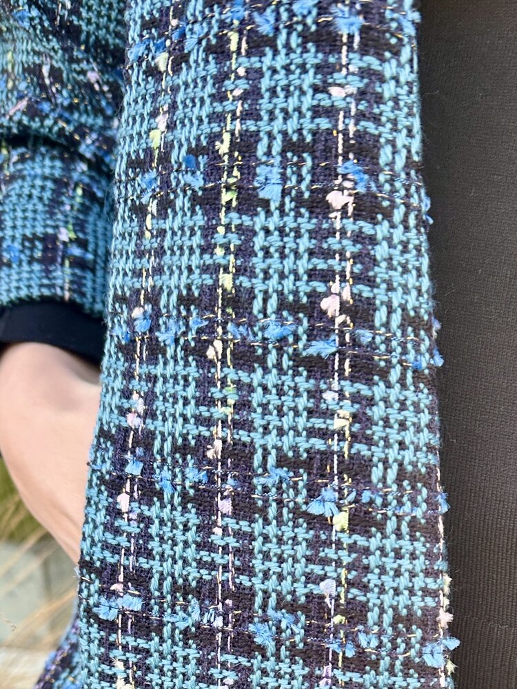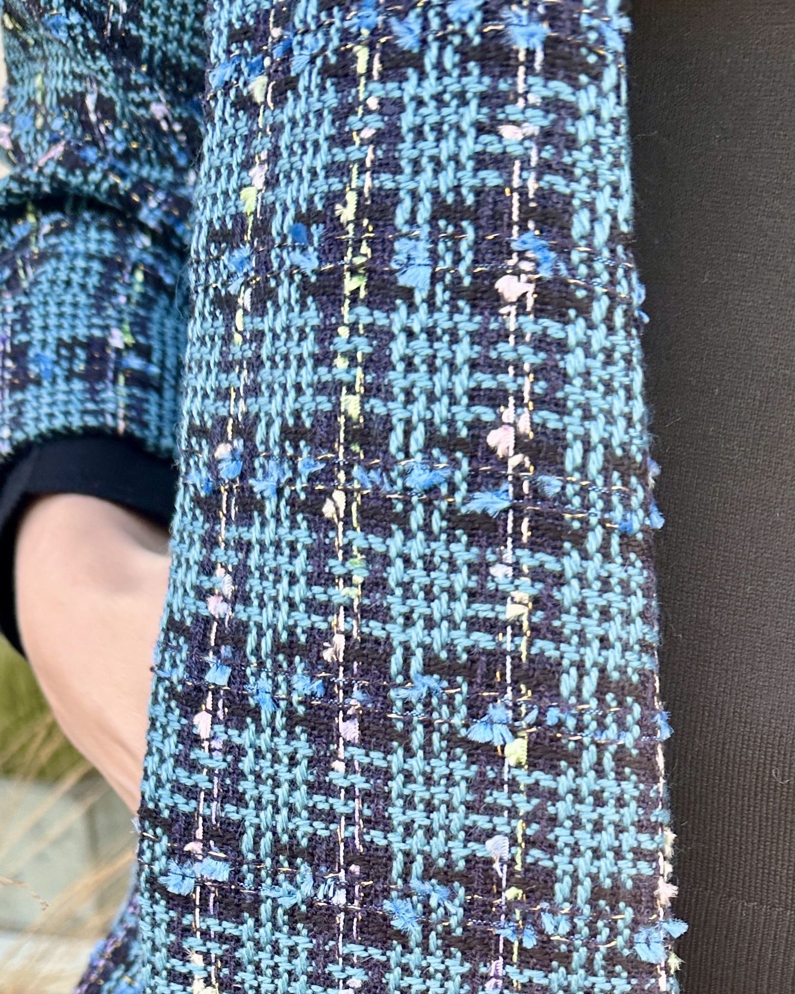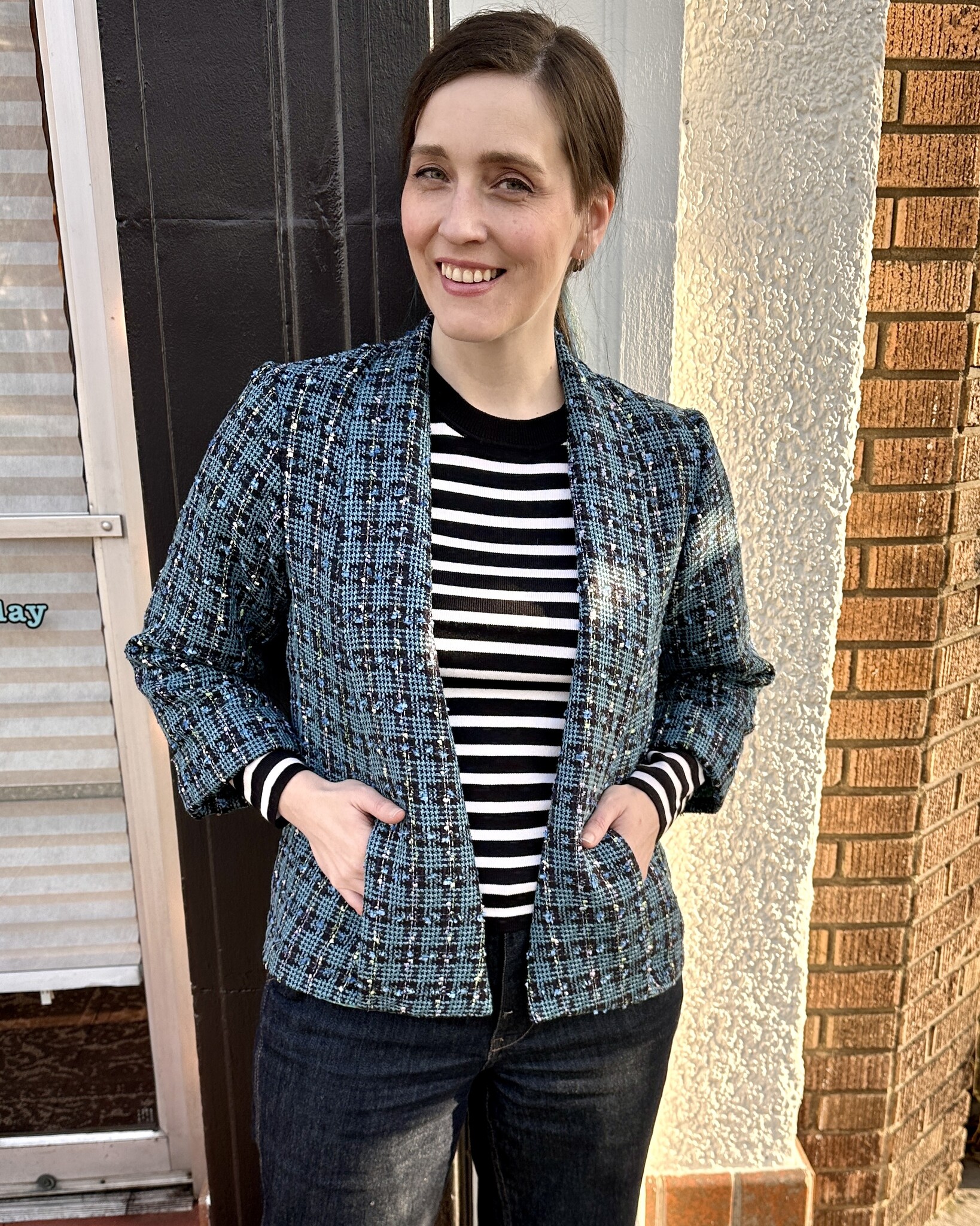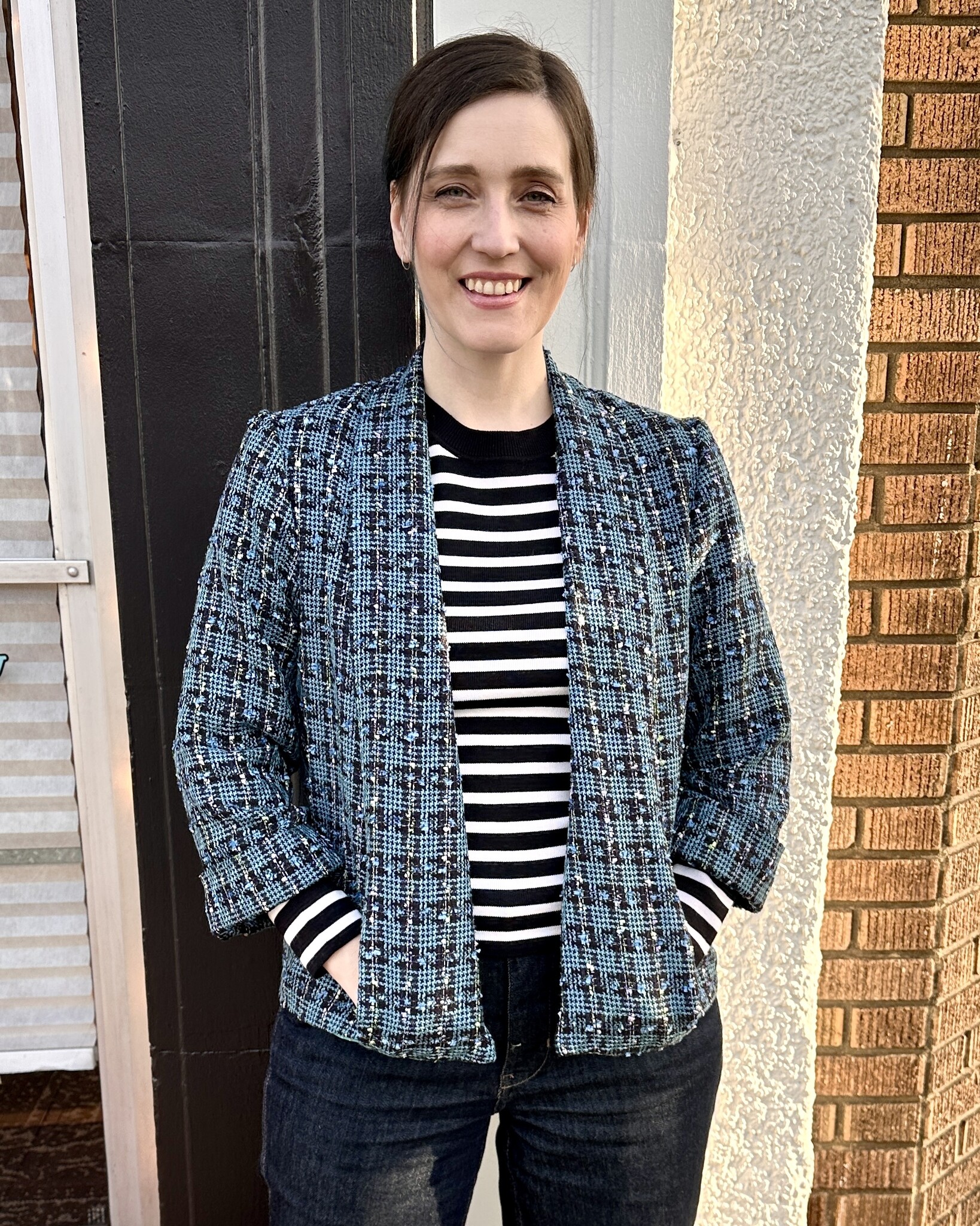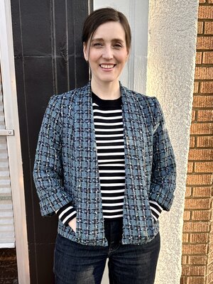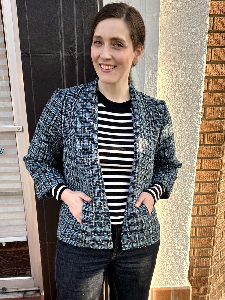 Cutest little jacket! Shawl collar doubles as hand pockets. The cutest lining!