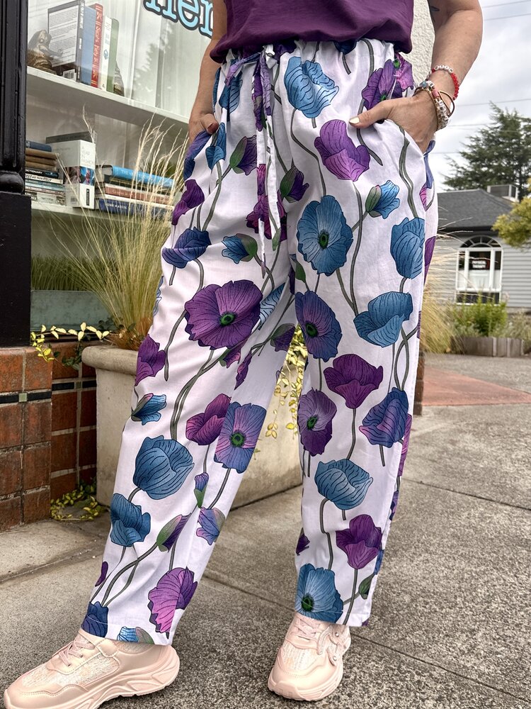 Donna PJ Pants are an easy fit, cropped, elastic back , drawstring front.