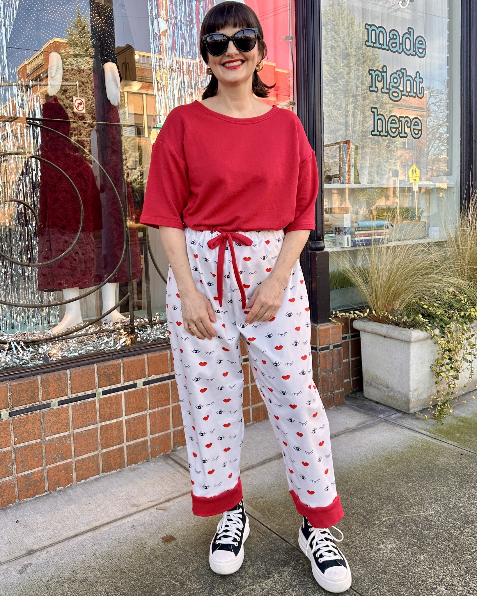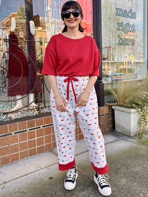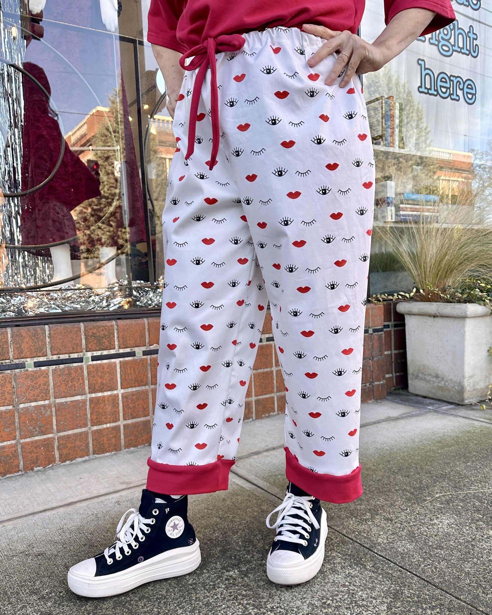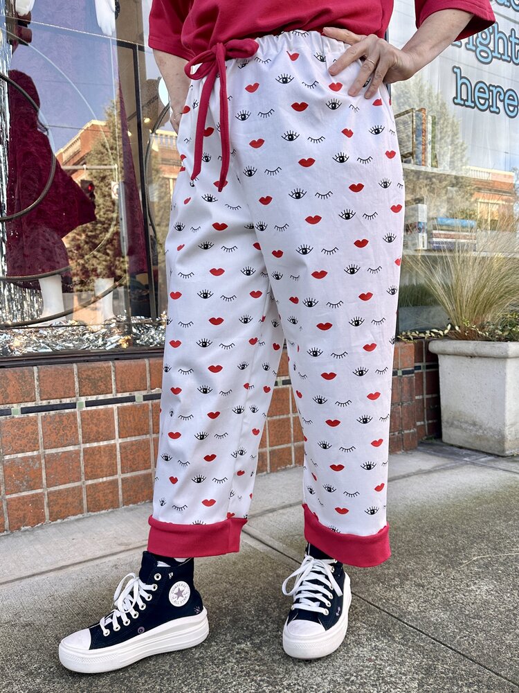 Donna PJ Pants are an easy fit, cropped, elastic back , drawstring front with contrast cozy detail at hem.