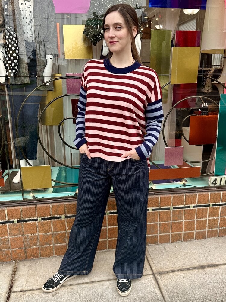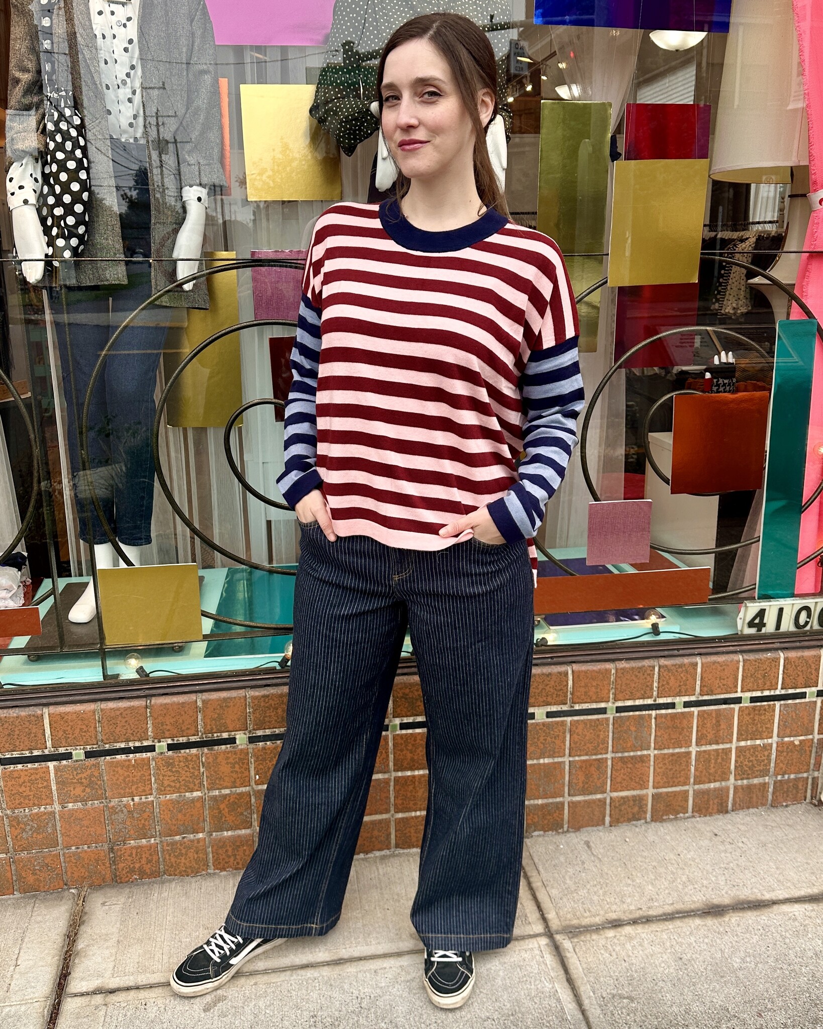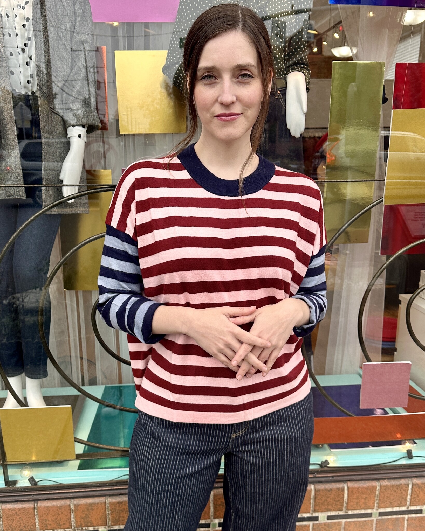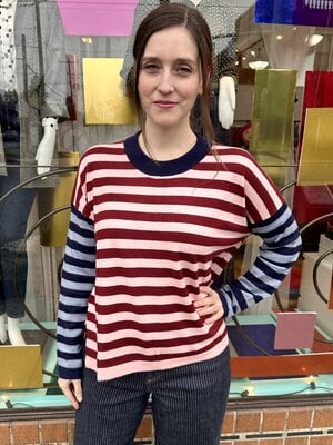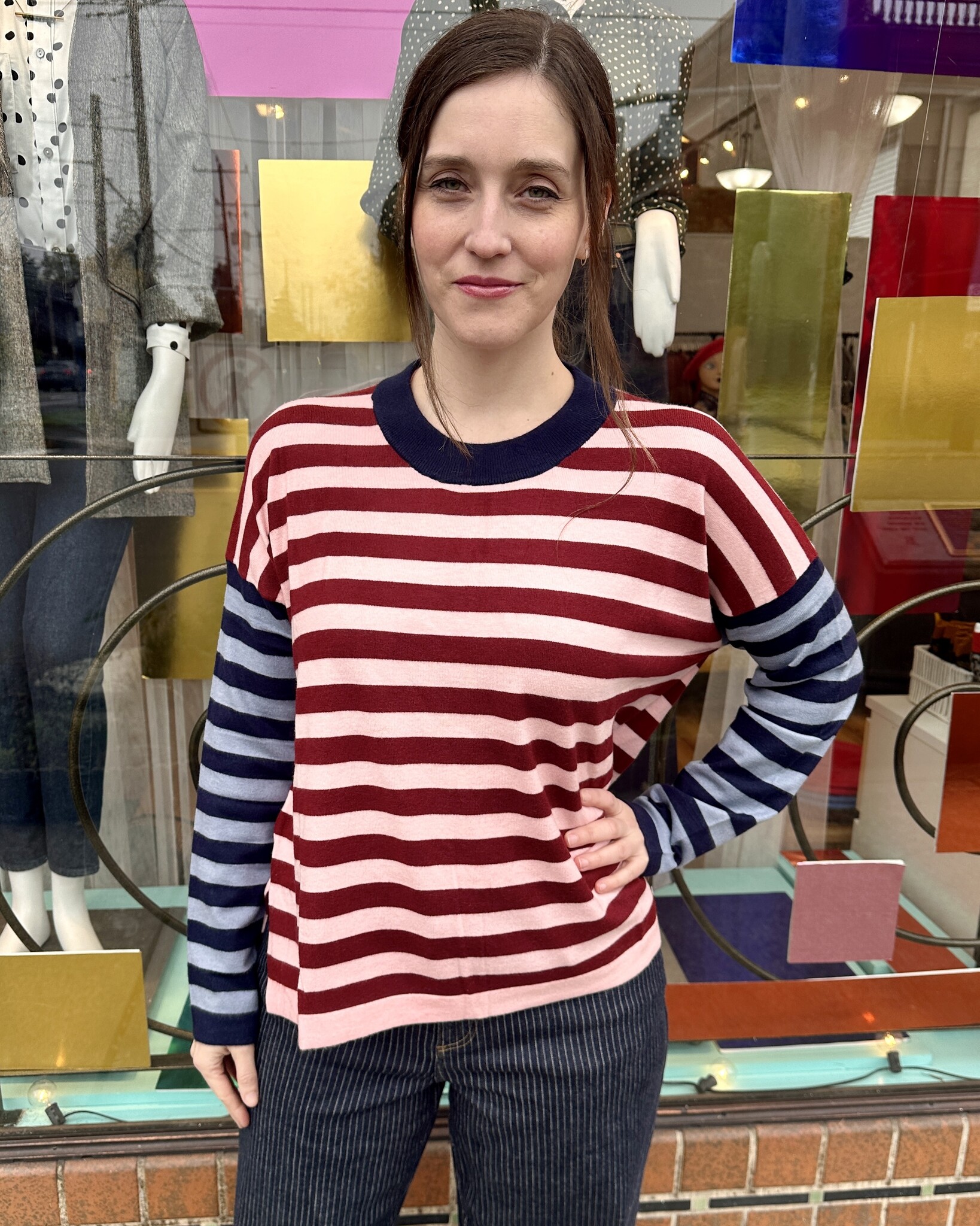 We had this sweater last year in a different color and it was very popular. Loose in the body and more fitted sleeves. Boxy goodness.