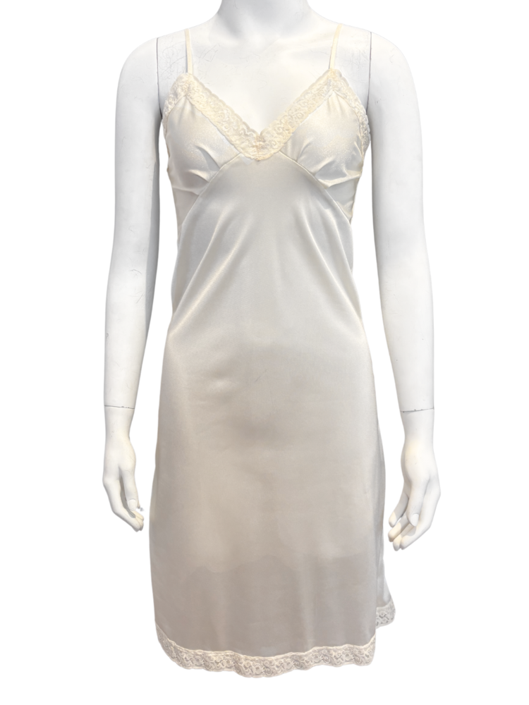The Erin slip is a perfect, classic, vintage style slip with adjustable straps. 100% nylon, exclusive of trim. Wash cold, hang dry. This slip is great for most body types. Hits above knee. Great for our curvier girls. Total classic.