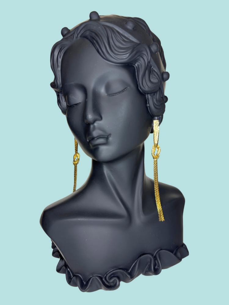 Fancy gold earrings. Add a bit of sparkle to your day!