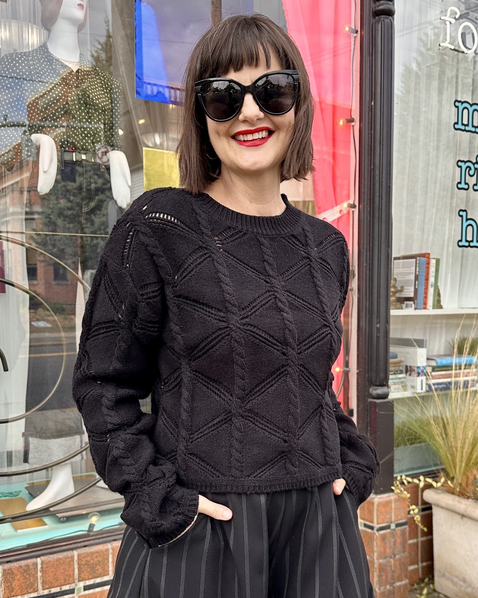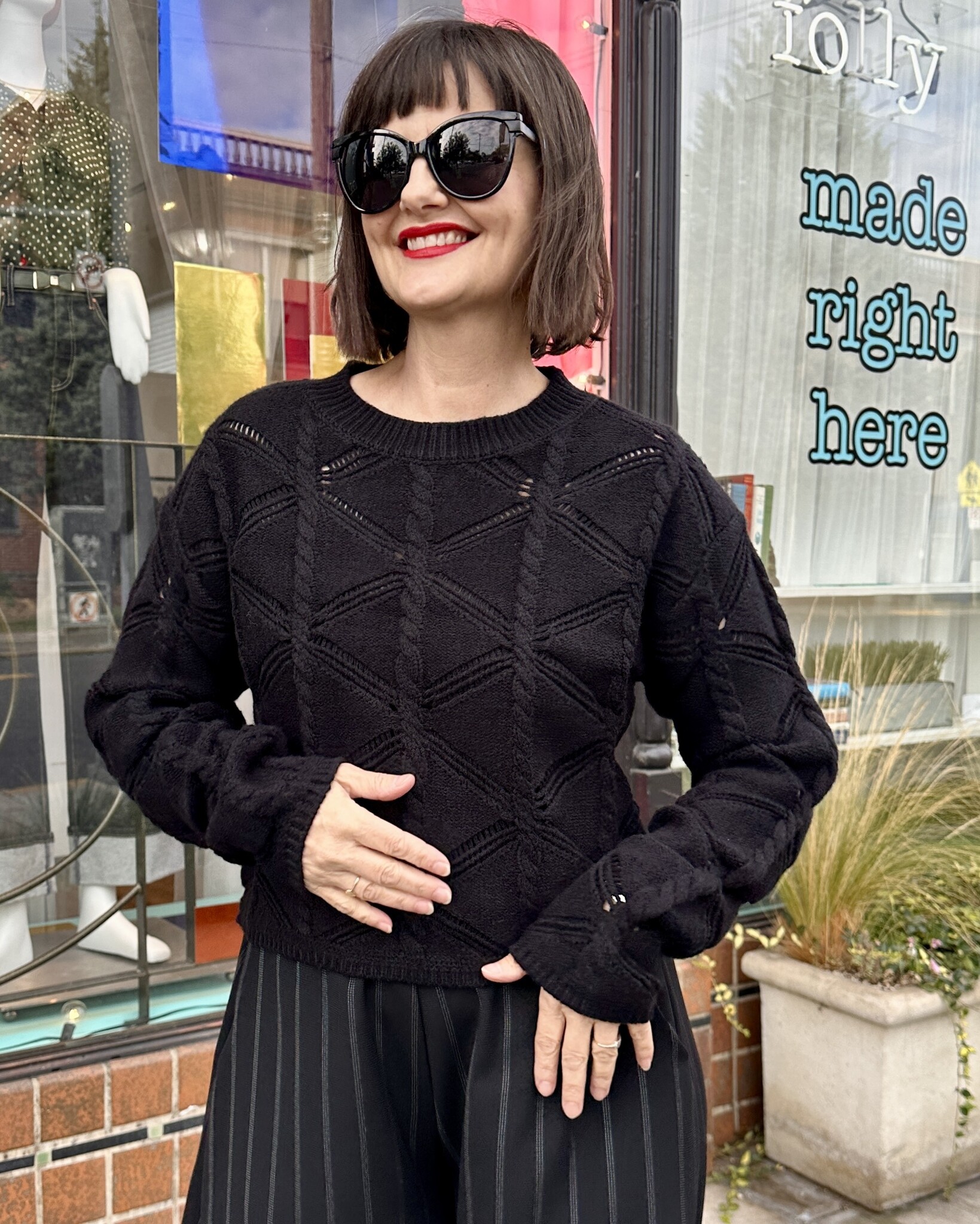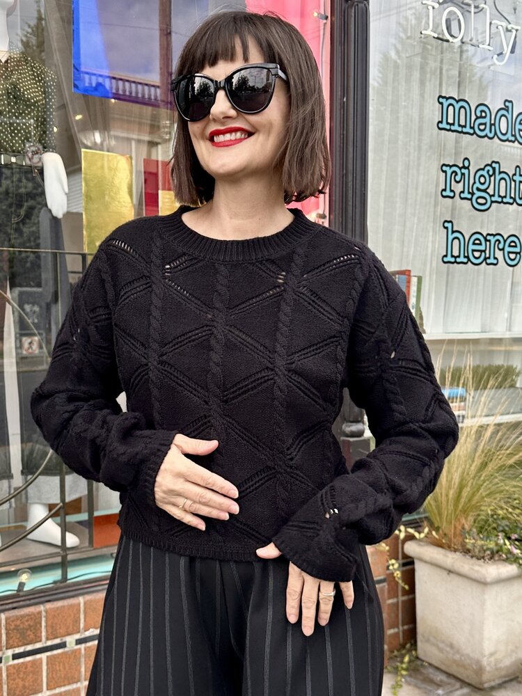 Is your outfit feeling a little flat? Try swapping your plain black sweater to this textured one for a new look!
