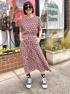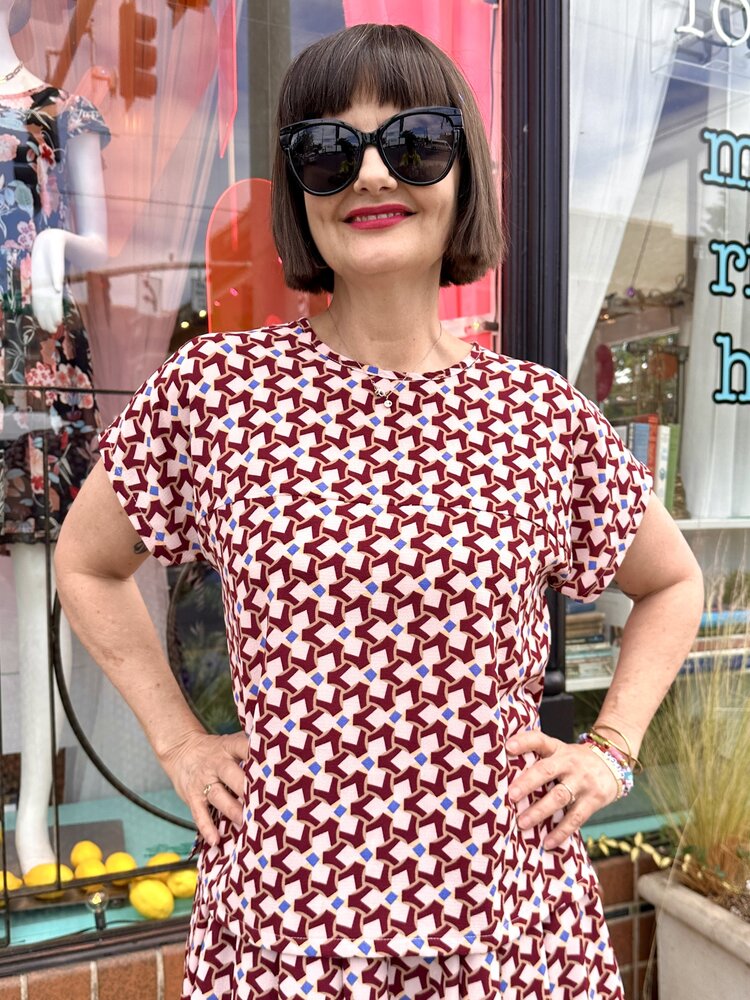 Poly bubble crepe, very light and soft with some built in stretch! Pair with matching Charmaine Skirt for a cute set!