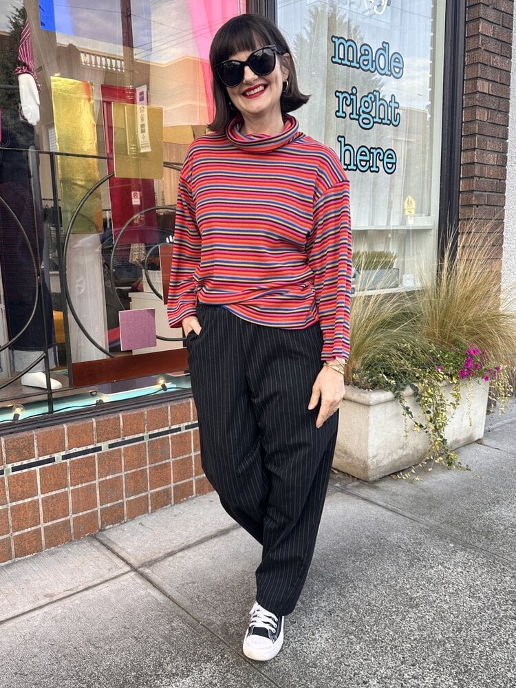 I love layering pieces like the LUMI top... a little boxy with wide/easy 3/4 sleeves with cozy cowl neck. This is a perfect piece to pair with your favorite skirt, cords or jeans.... looks put together without even trying!
