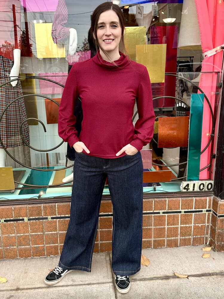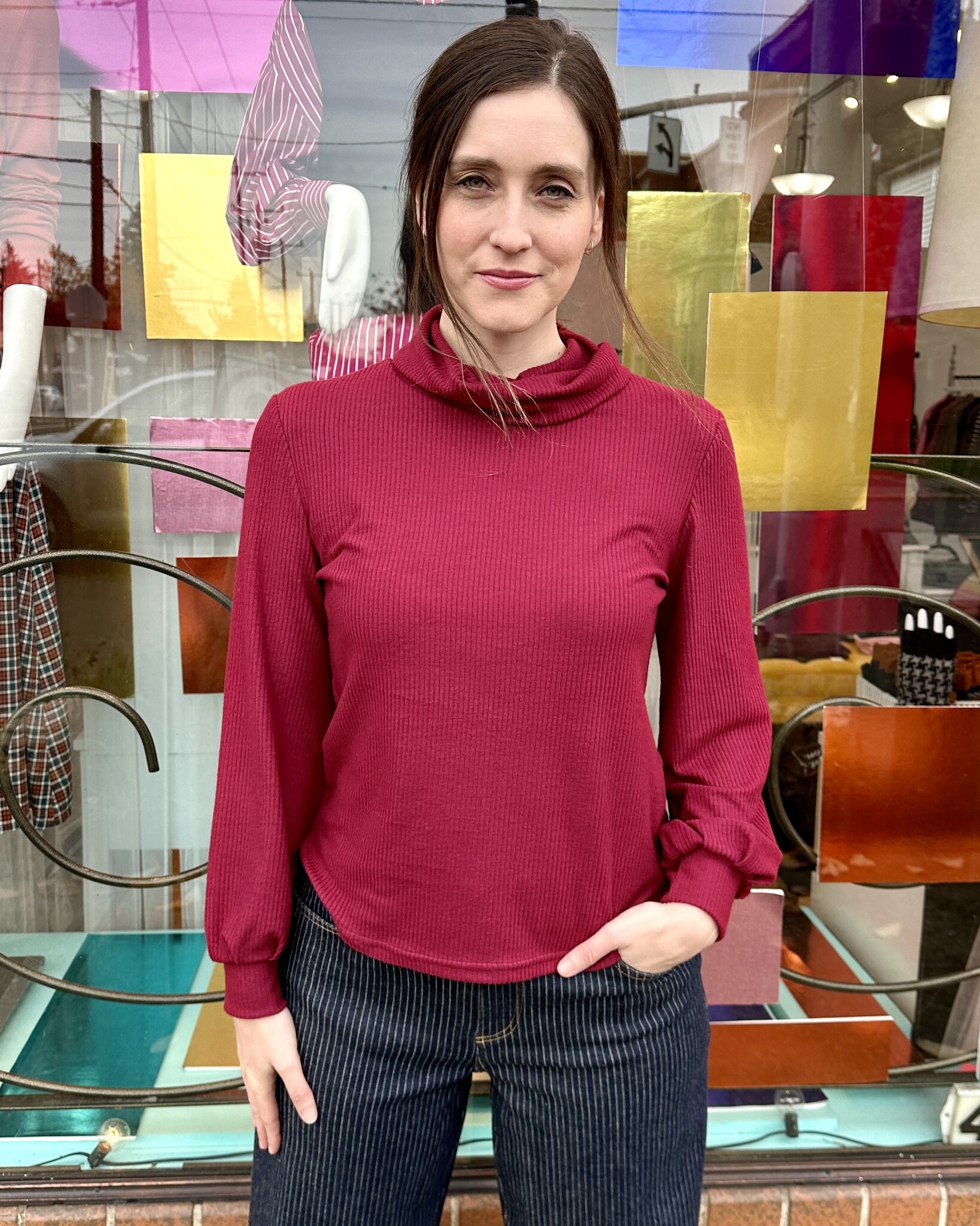 Super cozy cowl neck, long sleeve top with cuff detail.