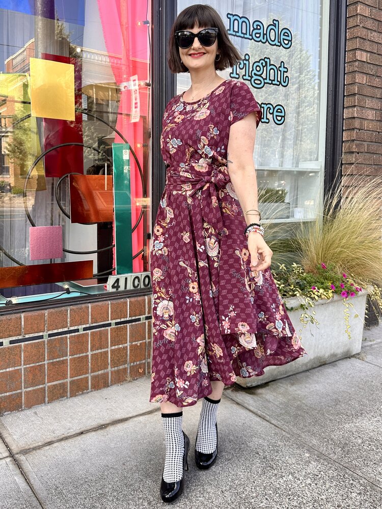 Romantic and flowy with an asymmetrical hemline. The short side is just above the knee and the long side is mid-calf.