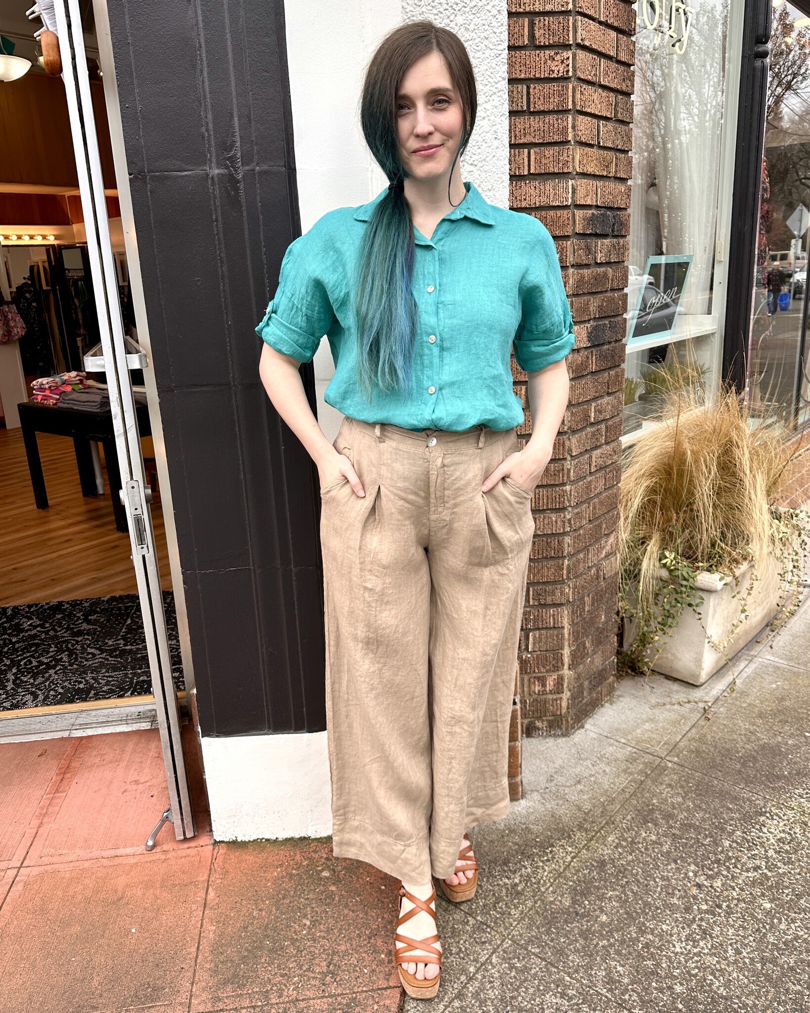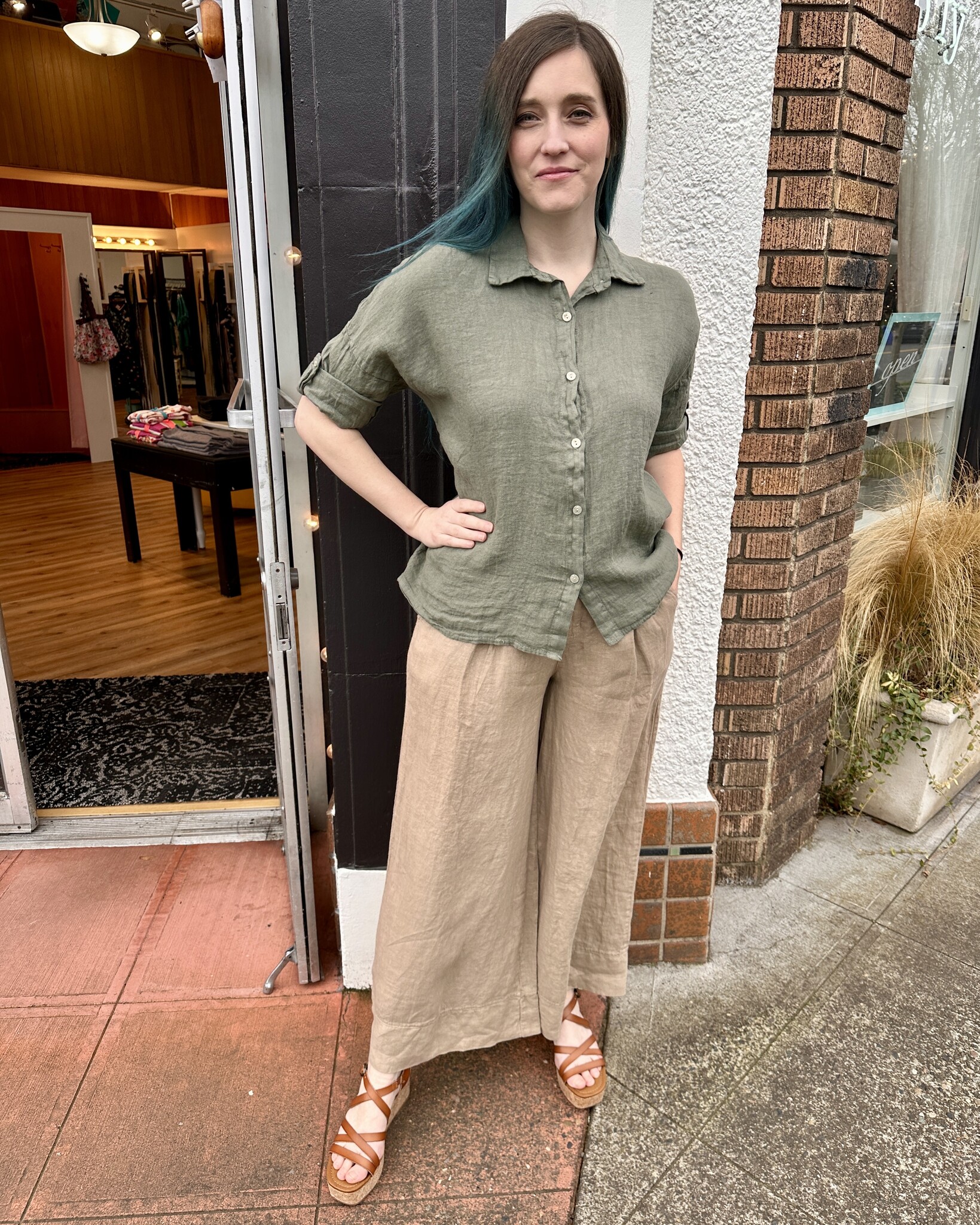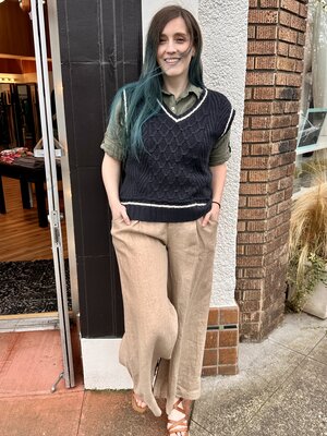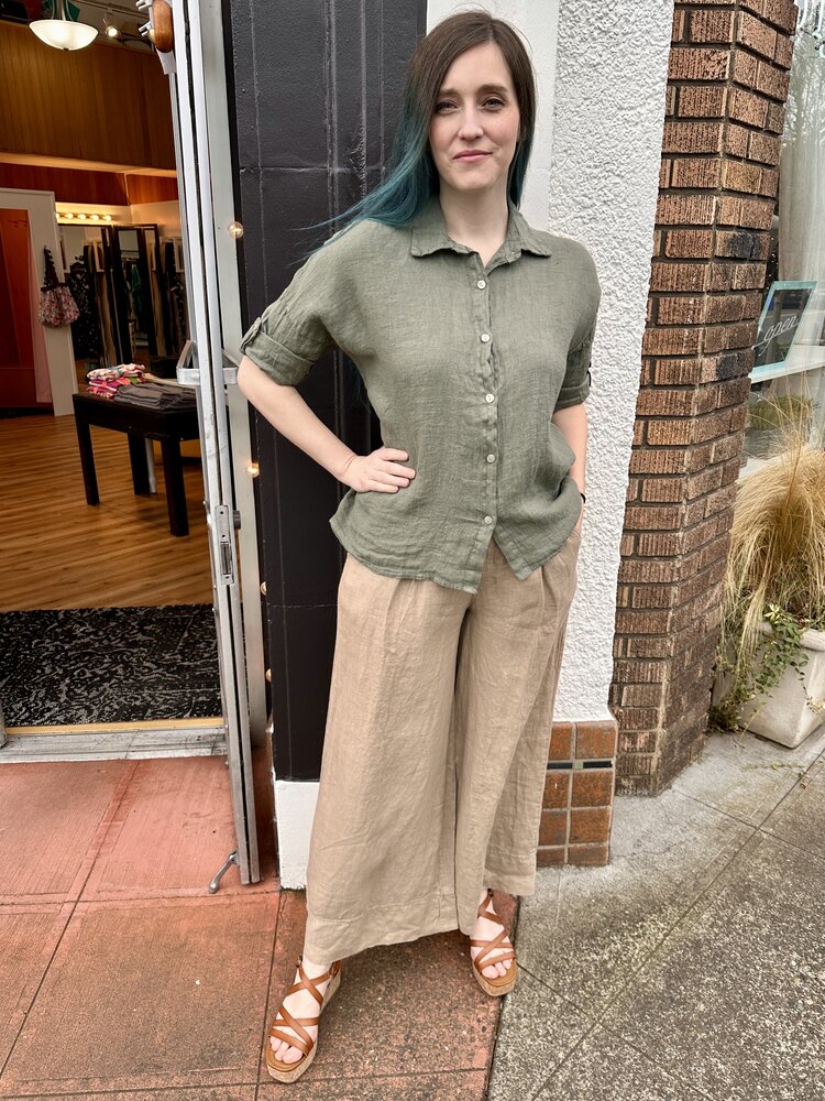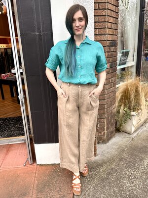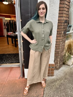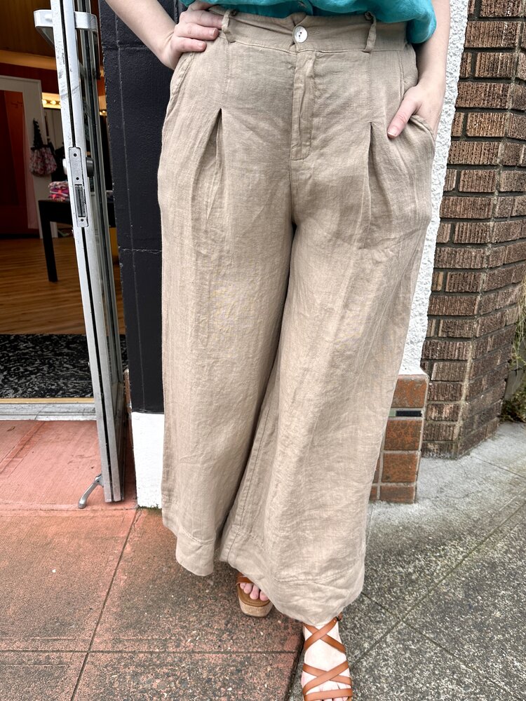 Light and breezy linen palazzo pants with pleat detail. A great summer pant for travel and everyday!