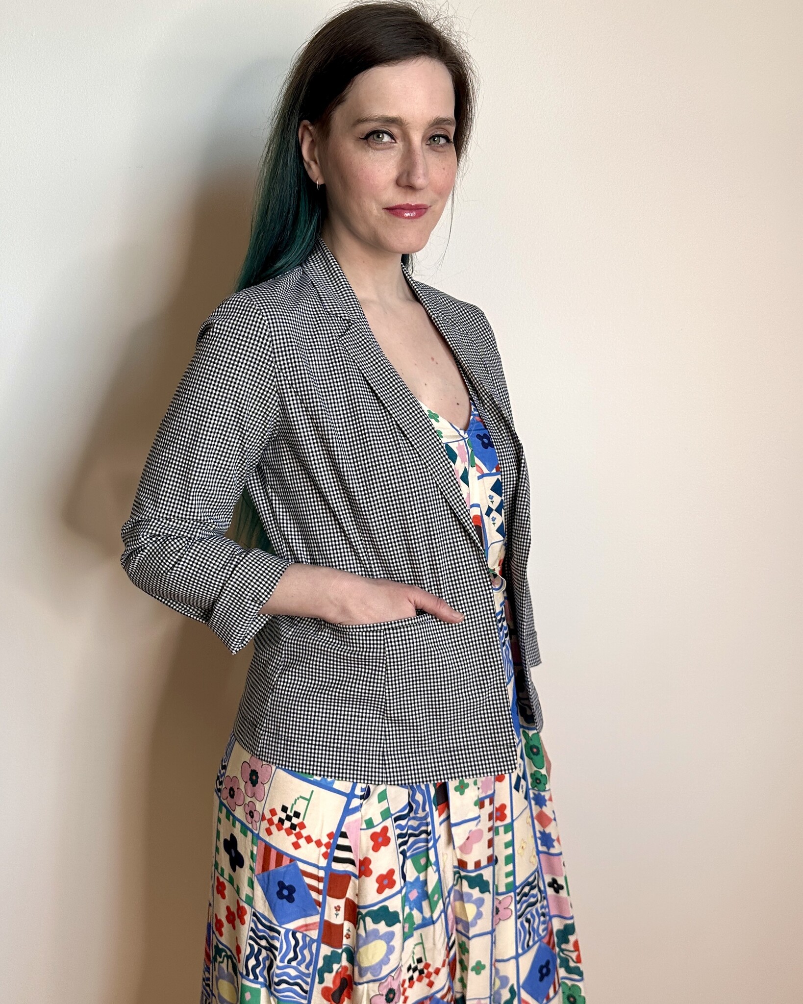 Wear with jeans or dresses. Black and white check goes with everything.
