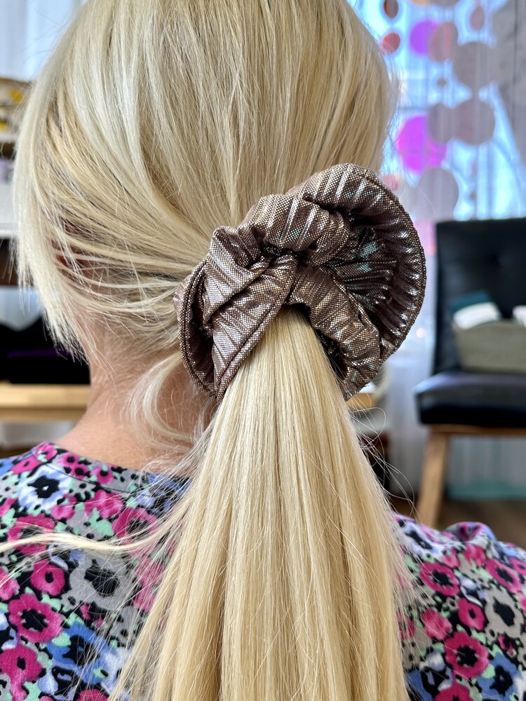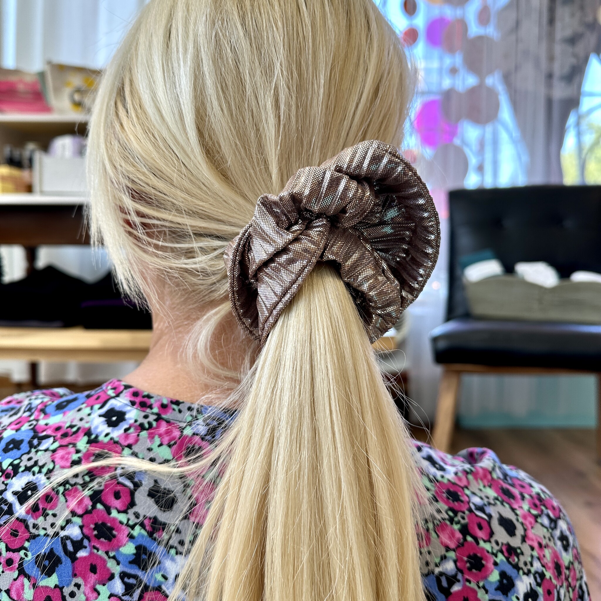 a Scrunchie is a fun accessory for your hair and it won't leave a kink. yay!