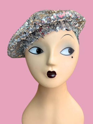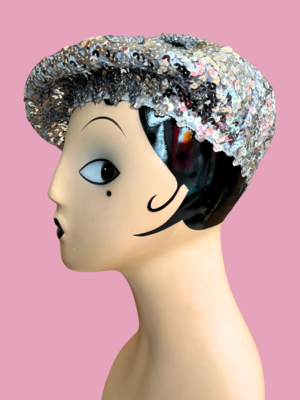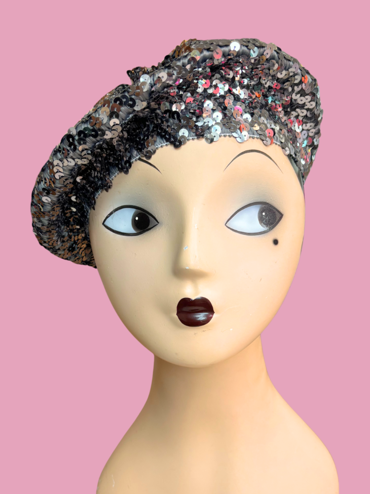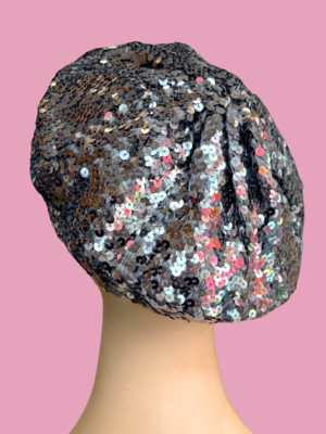 Fun slouchy beret made entirely of sequins—playful, glamorous, and perfect for adding sparkle to any outfit.