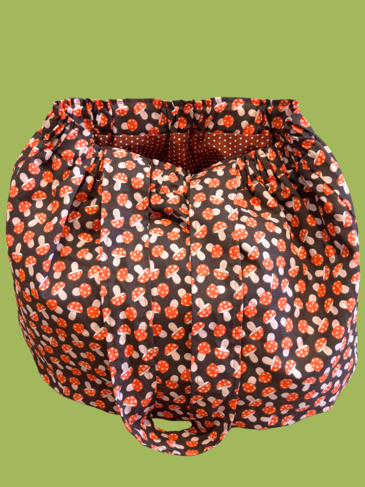 The slouchy Bag is a REVERSIBLE bag made by Busy Mushroom aka our lead seamstress Ying! The cutest bag to hold onto all your goodies.
