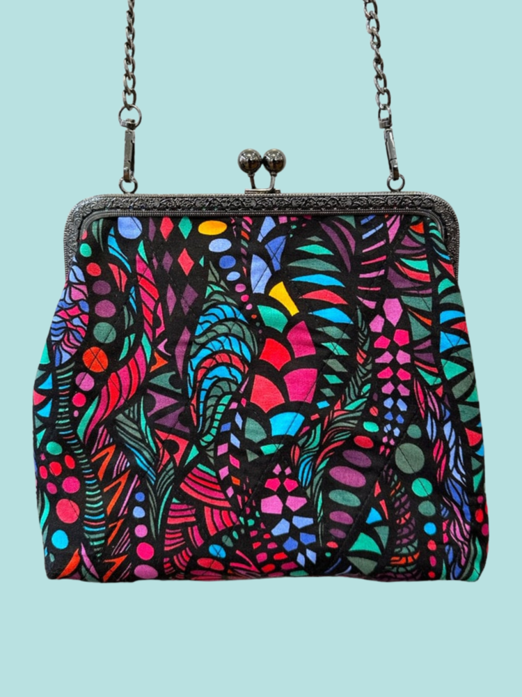 Super cute little purse can be worn cross body or on shoulder. Cotton prints with