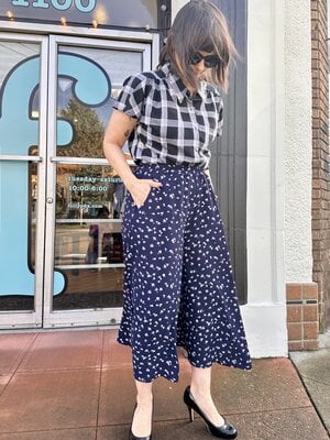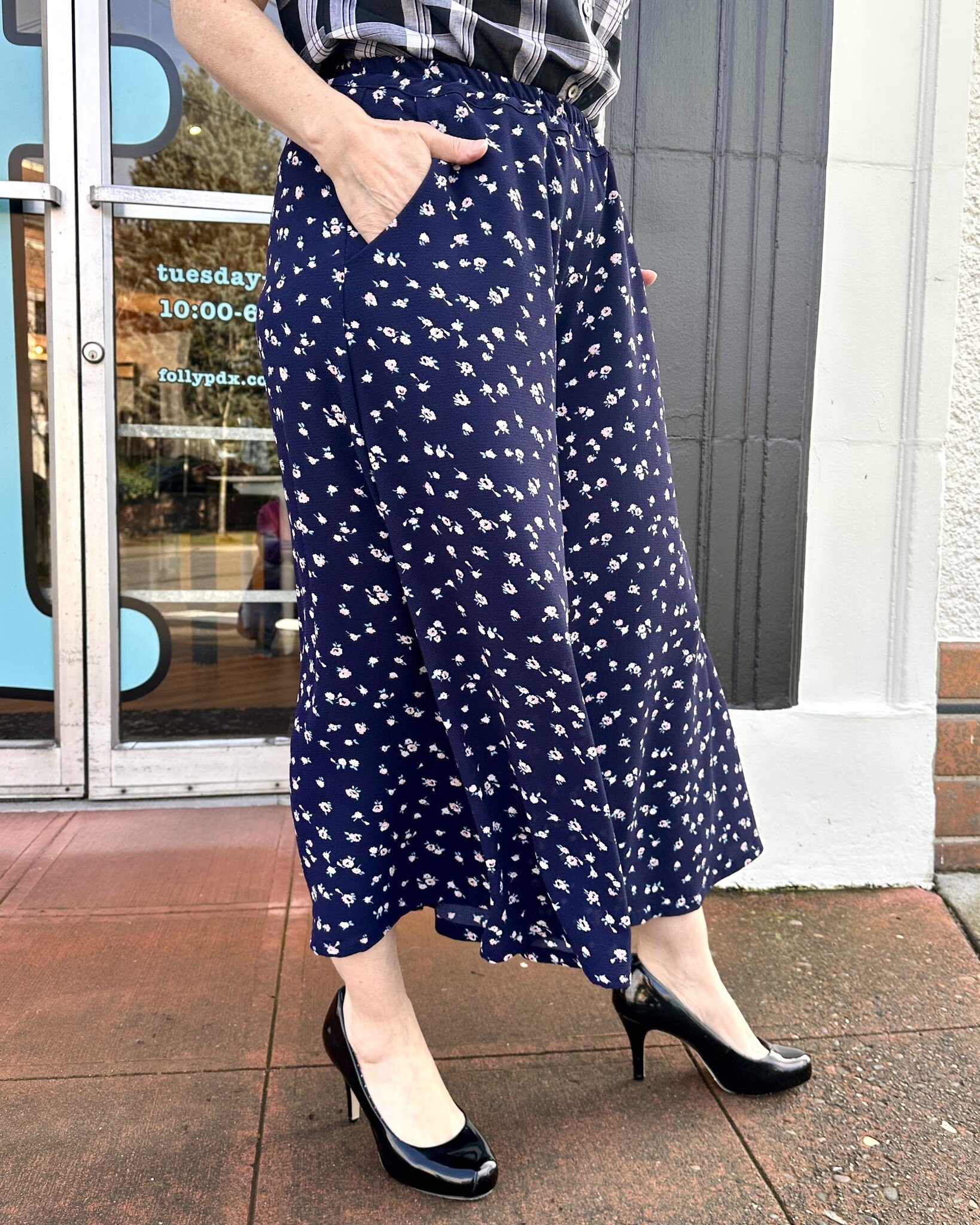 Extra wide leg so these look like a midi-skirt. So fun and perfect for travel/work/casual/cute.
