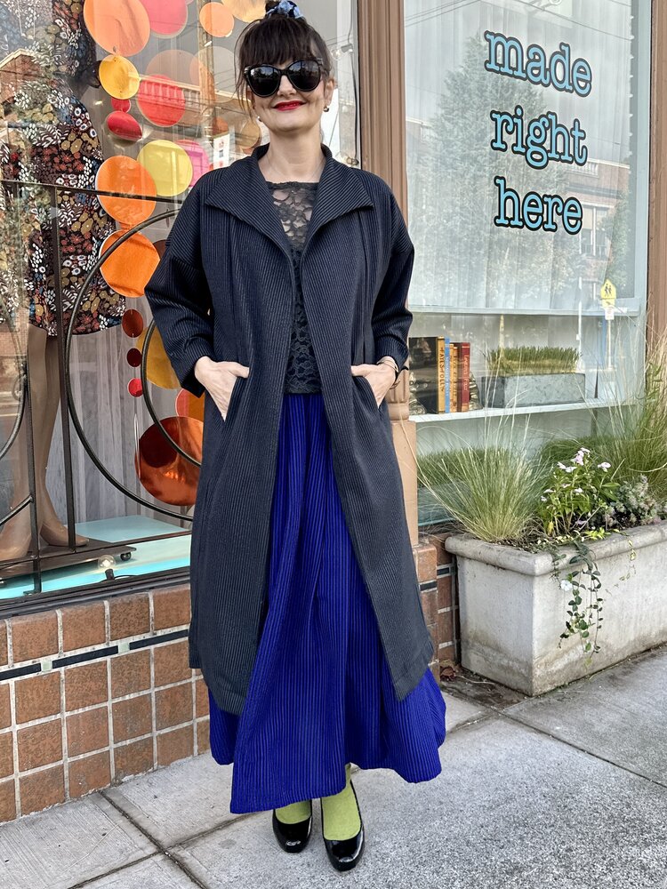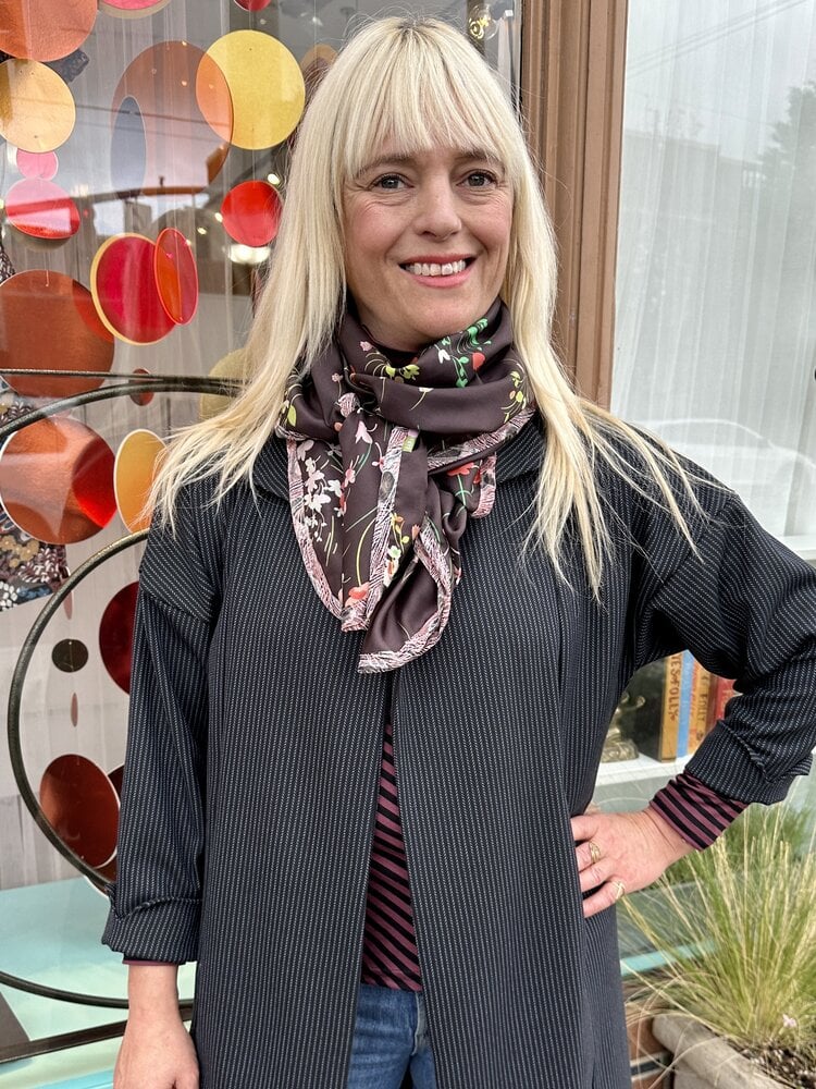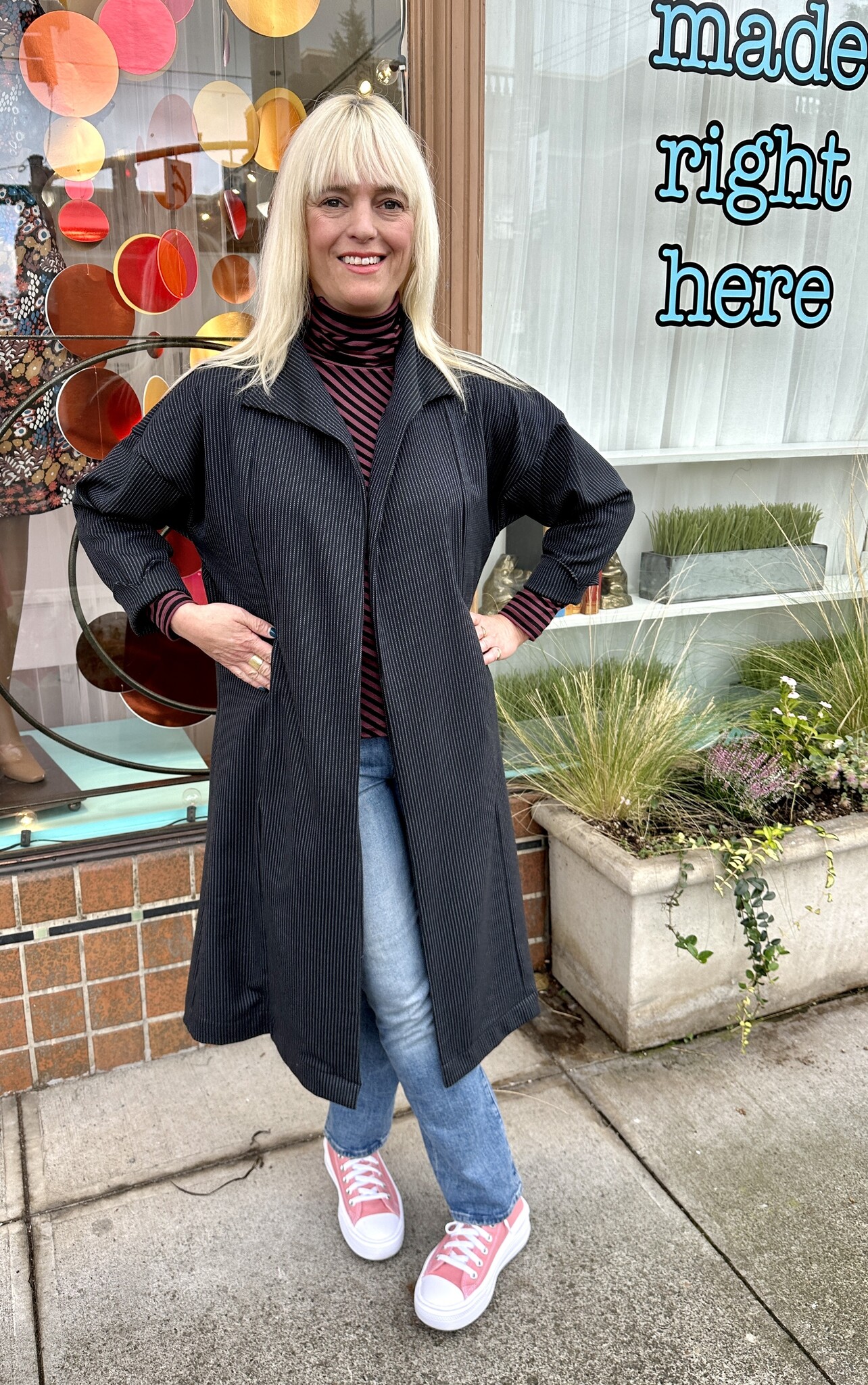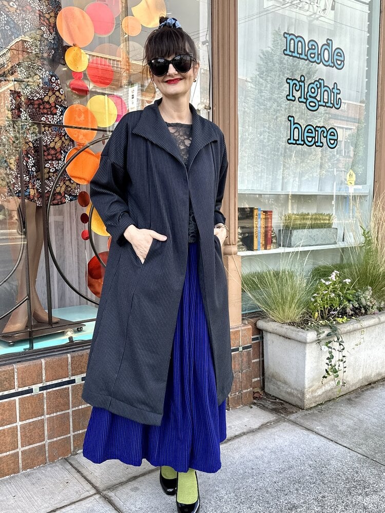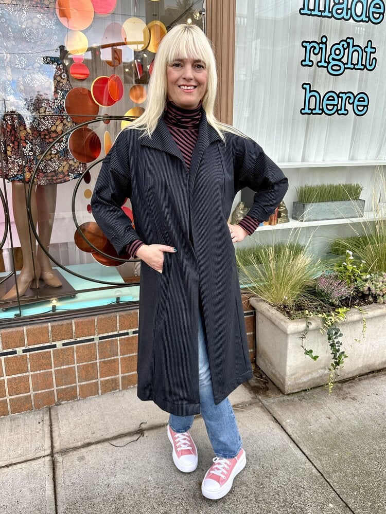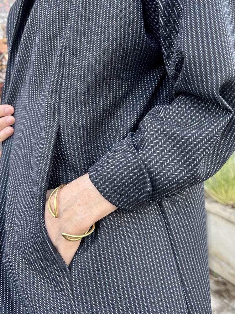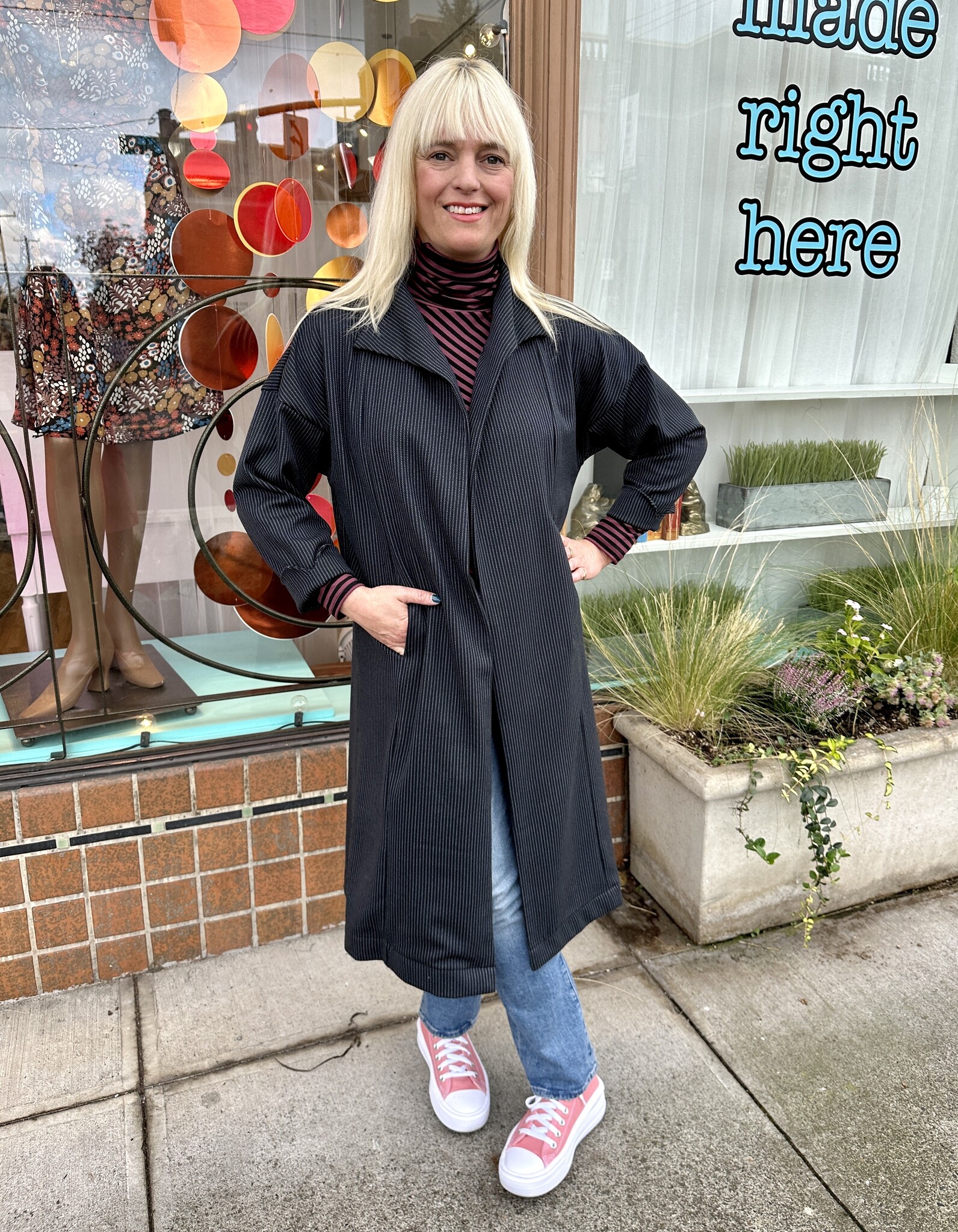 Dandy Pinstripe is soft and cozy and a good weight for inside or outside.