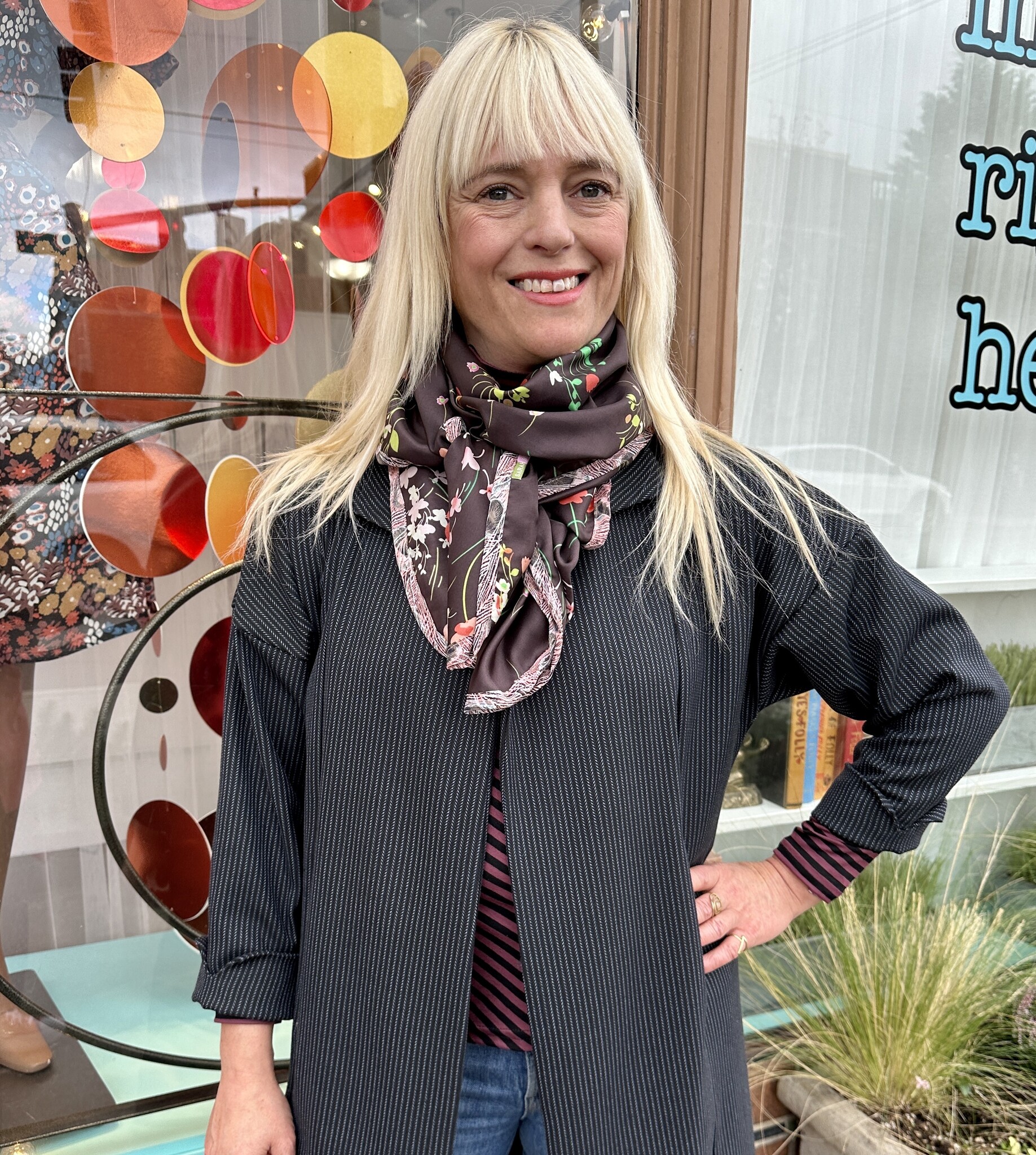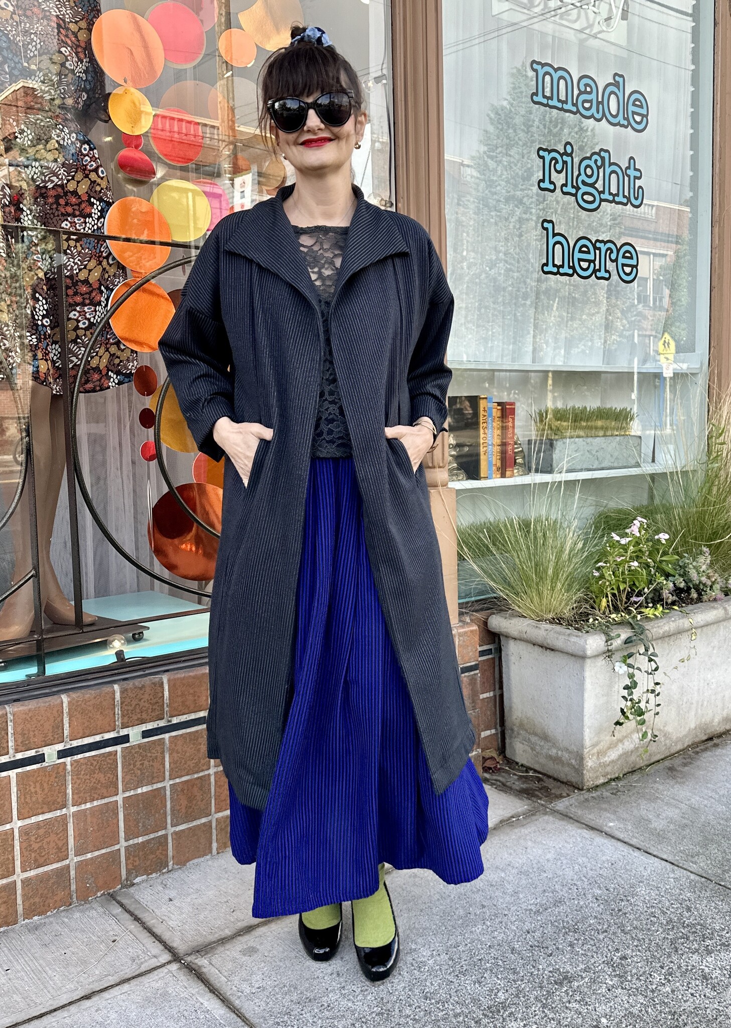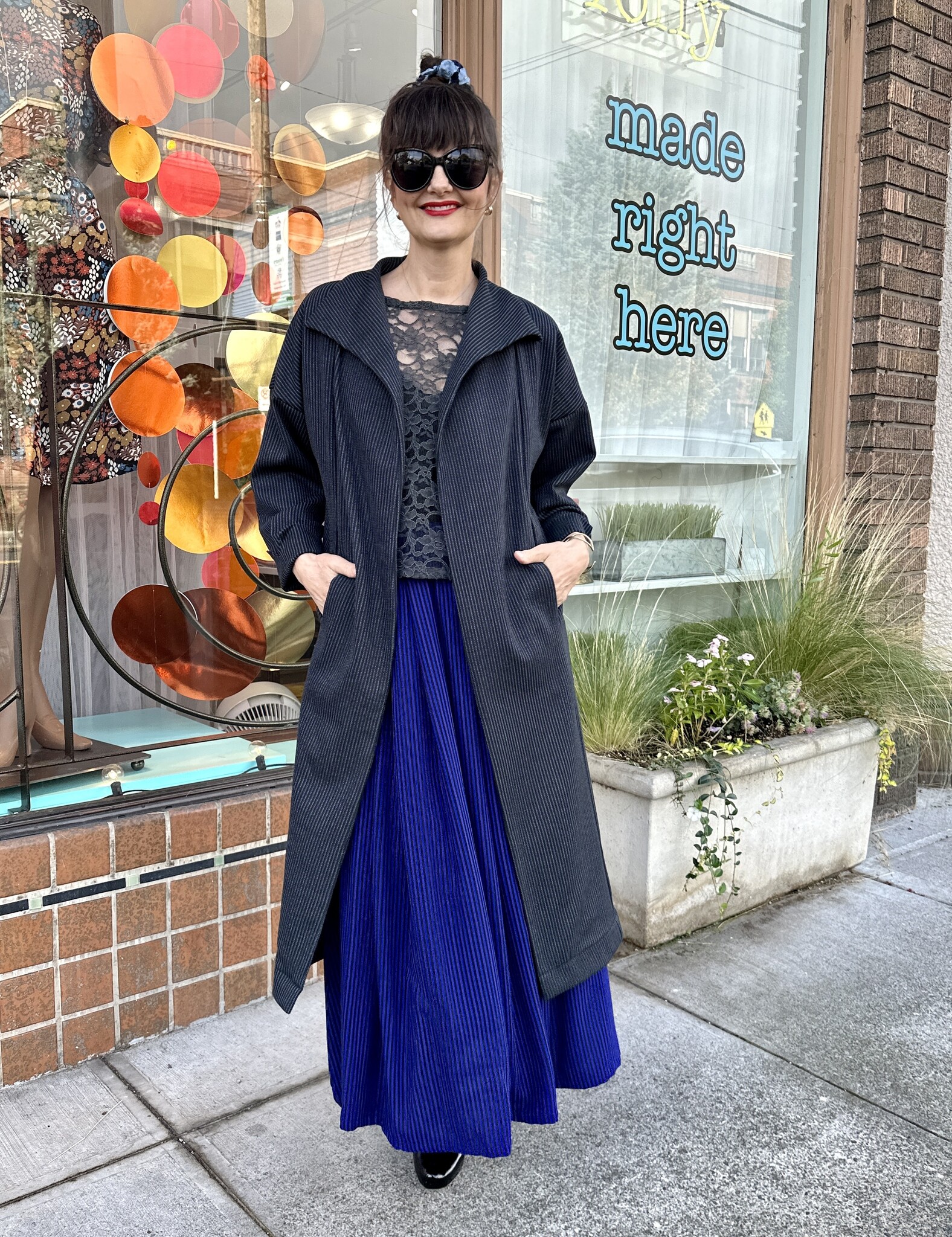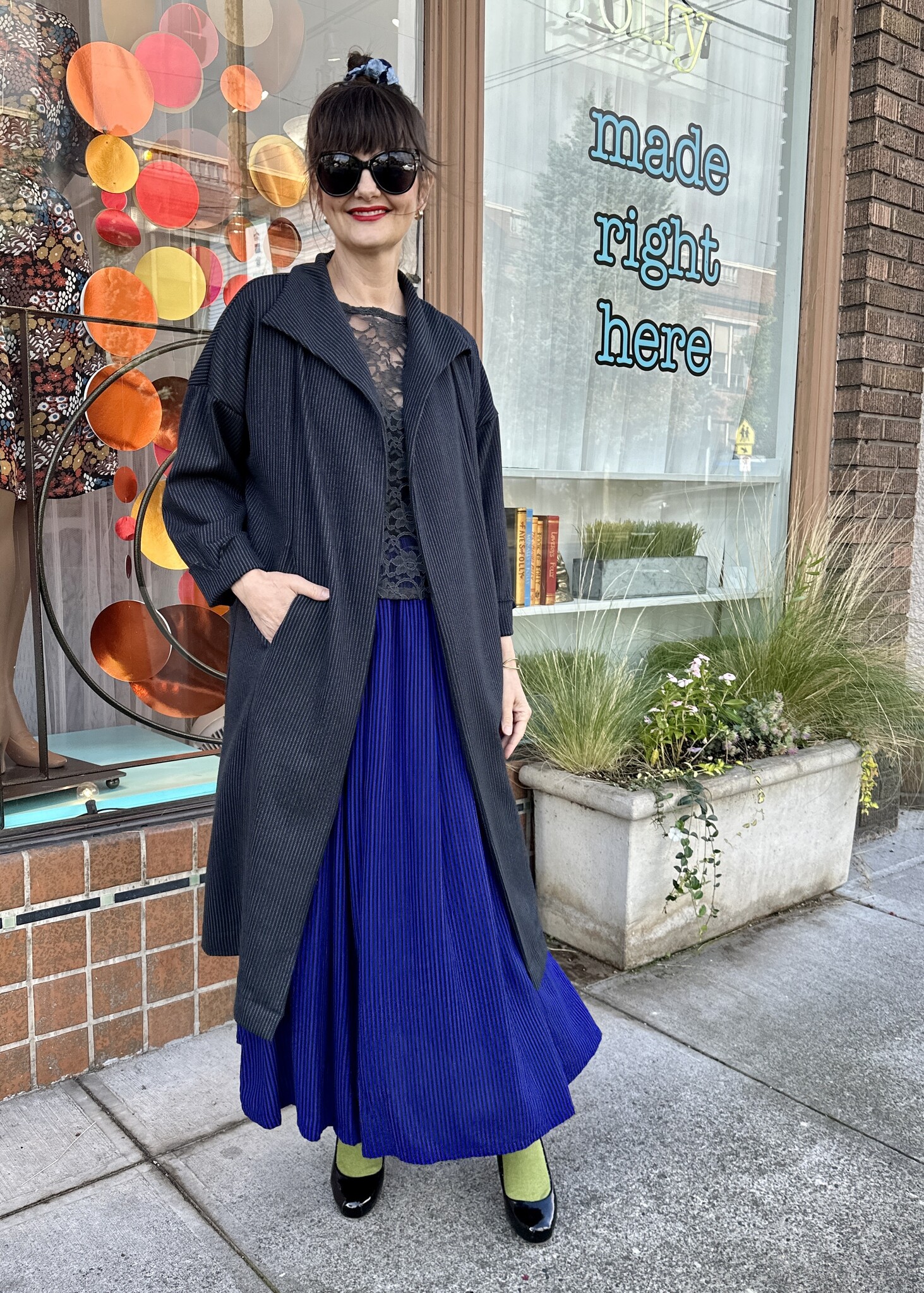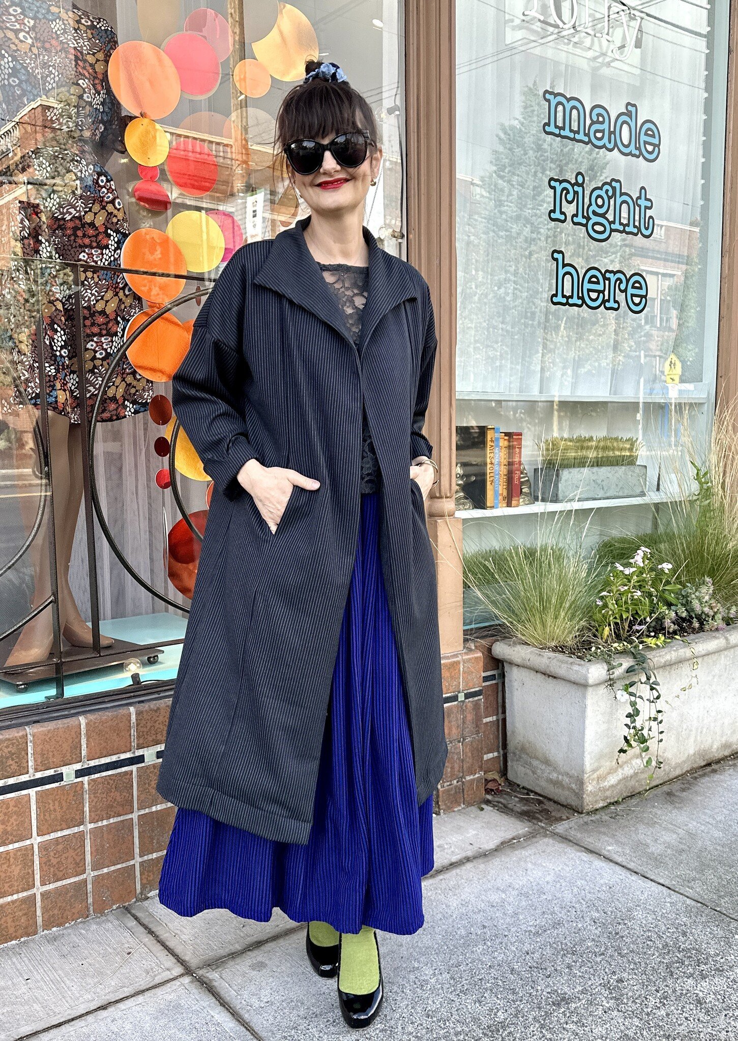 Dandy Pinstripe is soft and cozy and a good weight for inside or outside.
